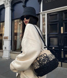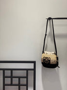 LOE 18 ANAGRAM BASKET BAG IN BLACK AND NATURAL RAFFIA