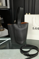 LOE MINI 19 PEBBLE BUCKET IN BLACK MELLOW CALFSKIN