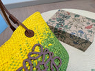 LOE SMALL ANAGRAM BASKET 28 BAG IN YELLOW MIX GREEN IRACA PALM AND CALFSKIN