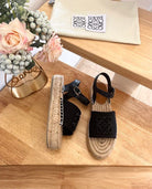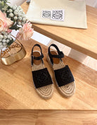 Loew Anagram Black Beige Leather And Canvas Espadrille Sandals
