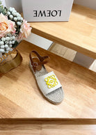 Loew Anagram Yellow logo White Brown Leather And Canvas Espadrille Sandals