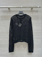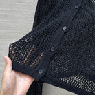 Loewe 25 Mesh Hollow Knitted Cardigan Black Wool