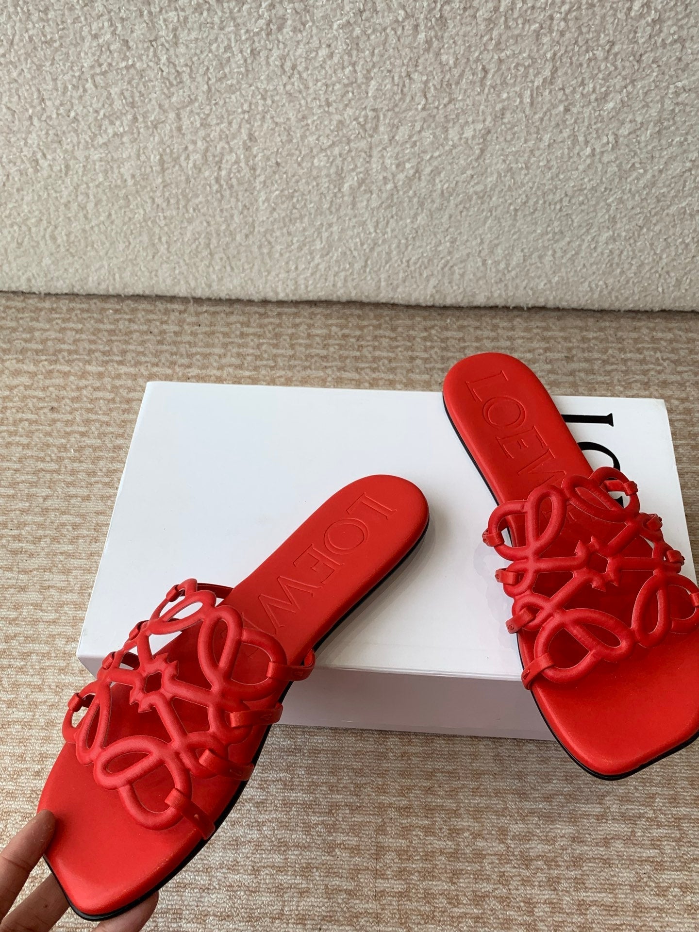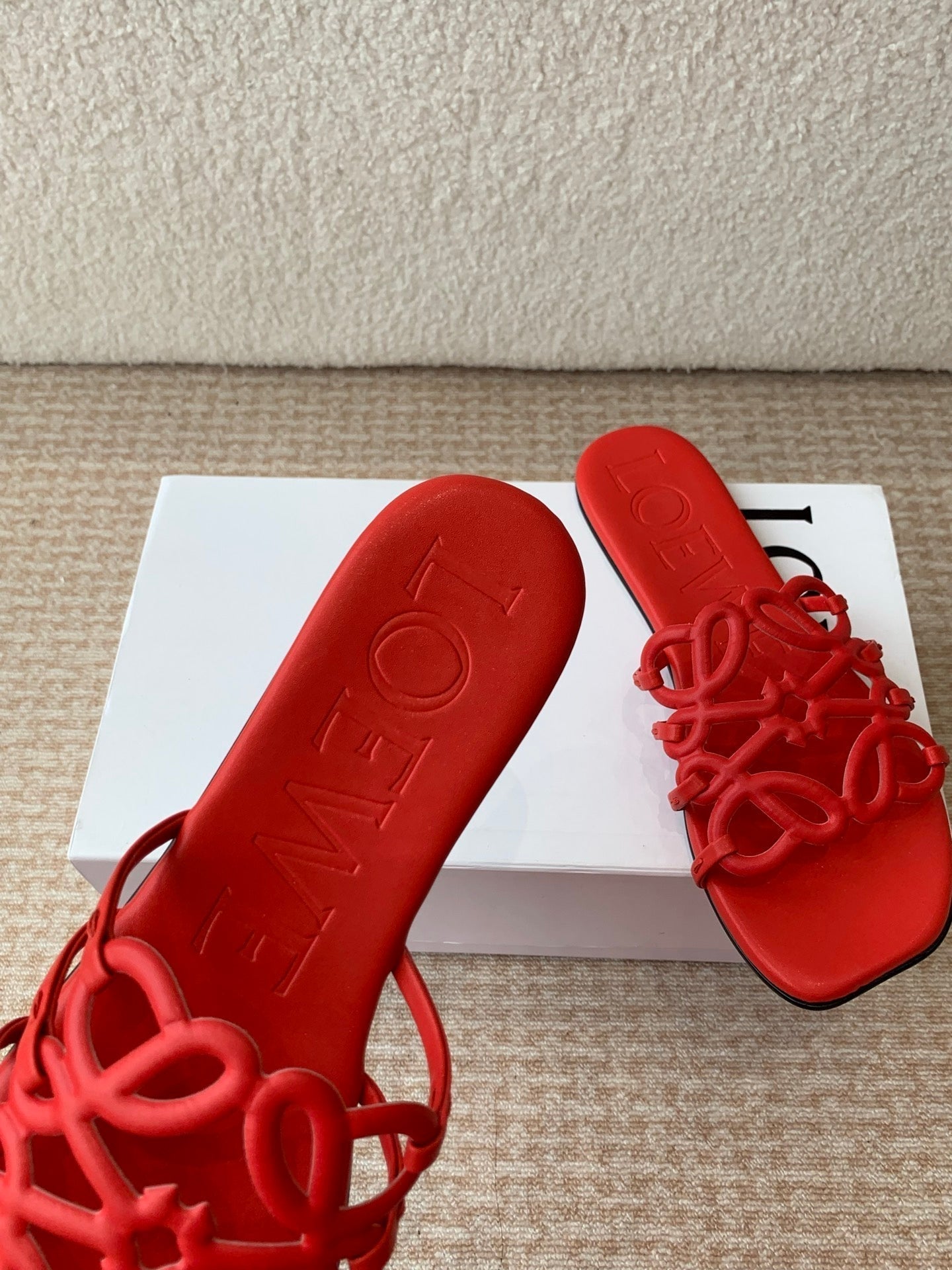 Loewe 25 Petal Anagram Slides Red Cowhide