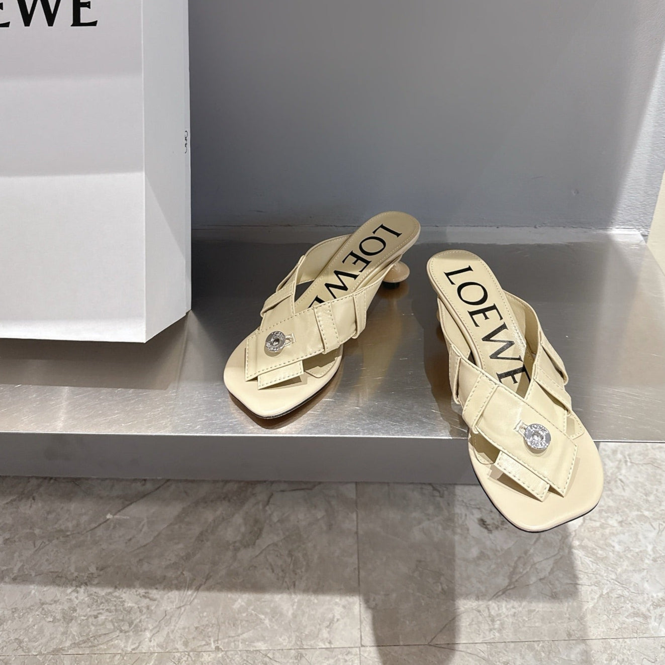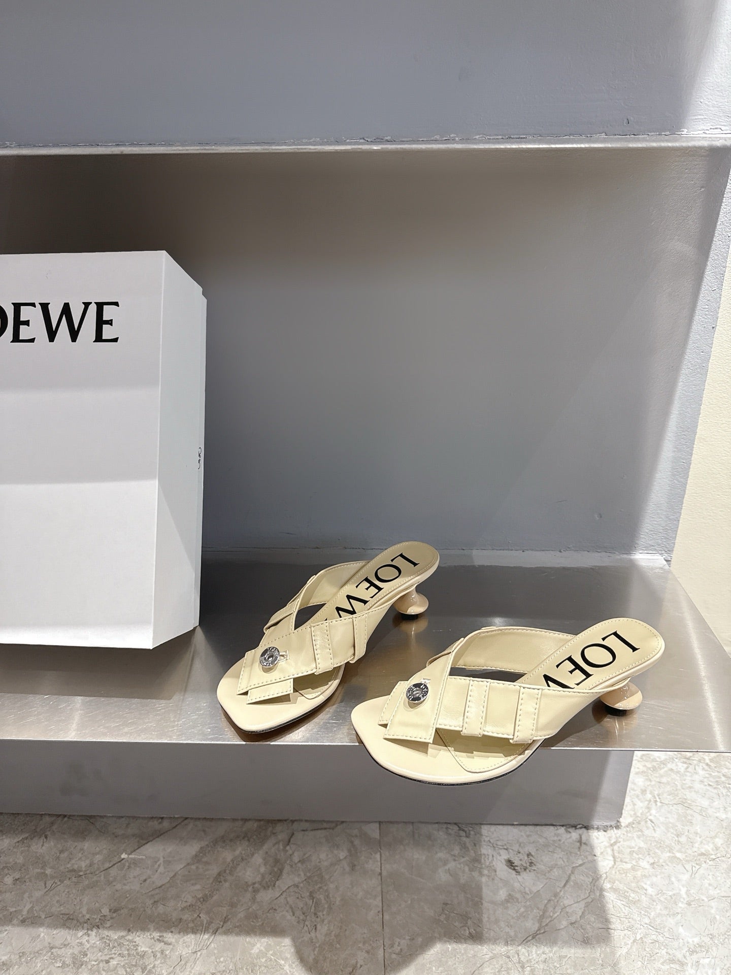 Loewe 25 Toy Panta Toe Thong 5cm Beige Sheepskin