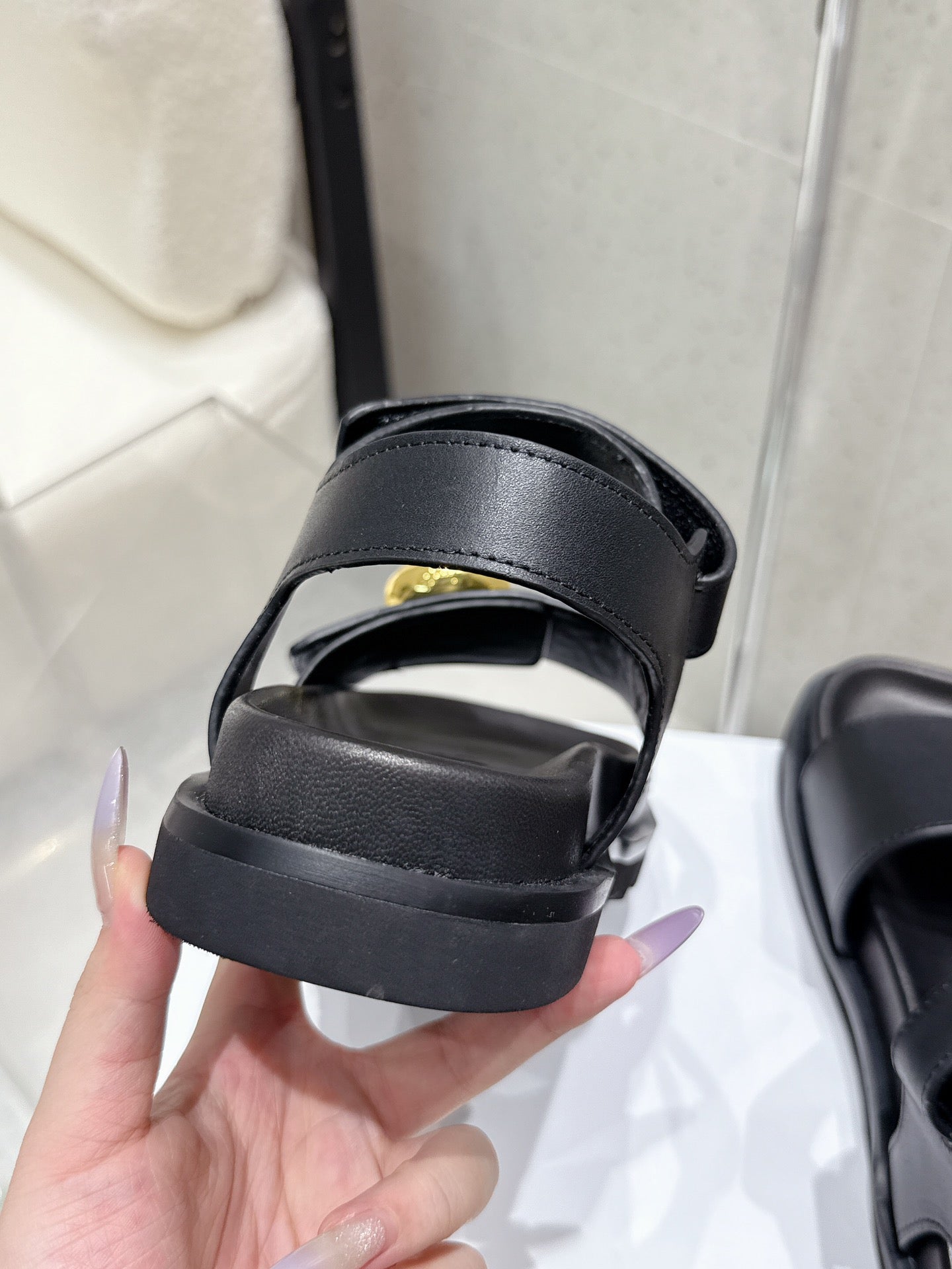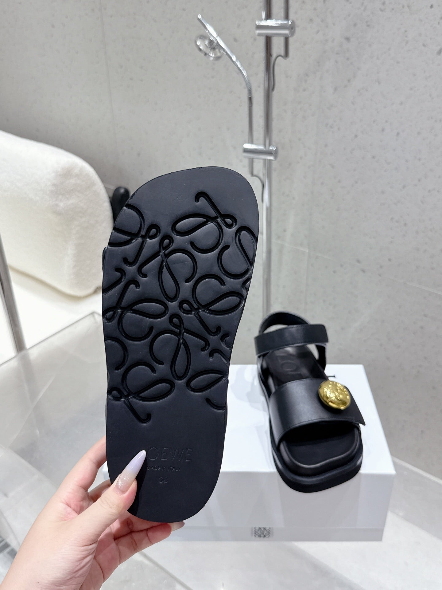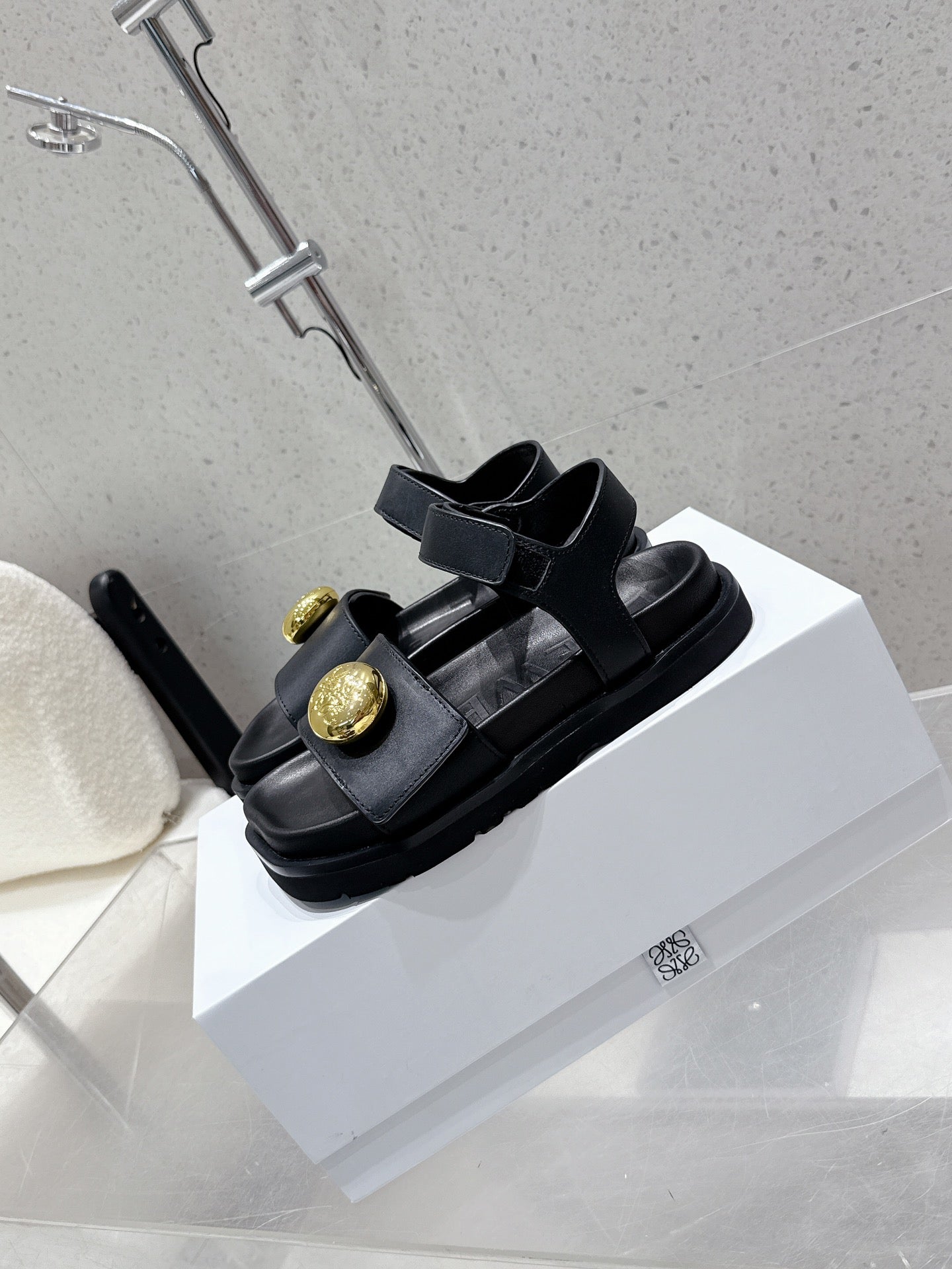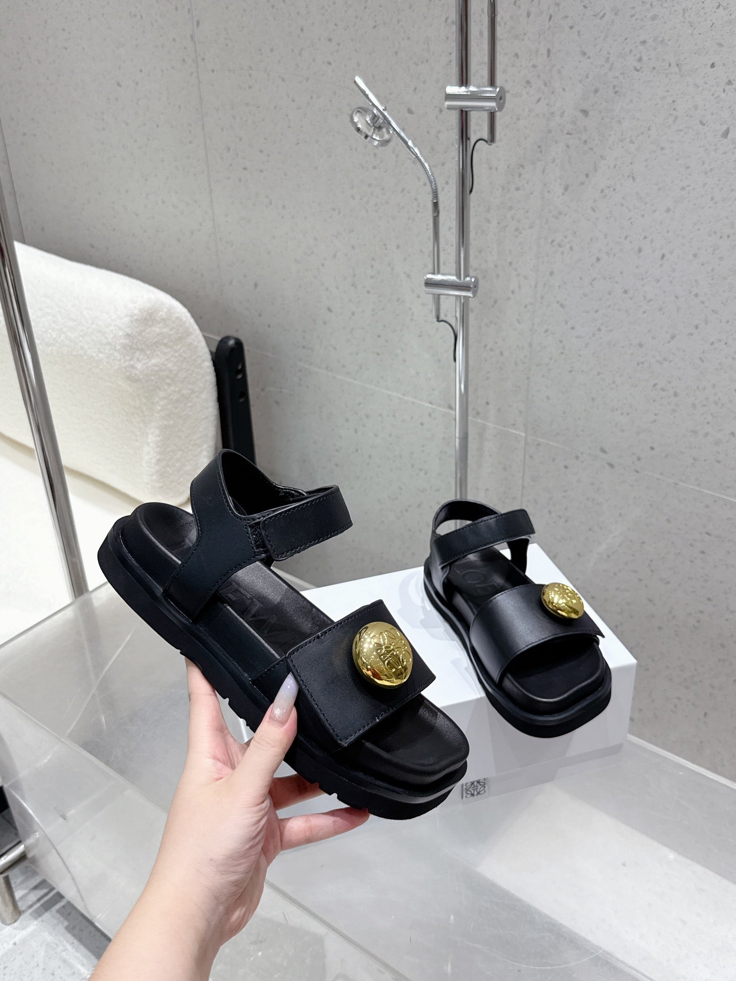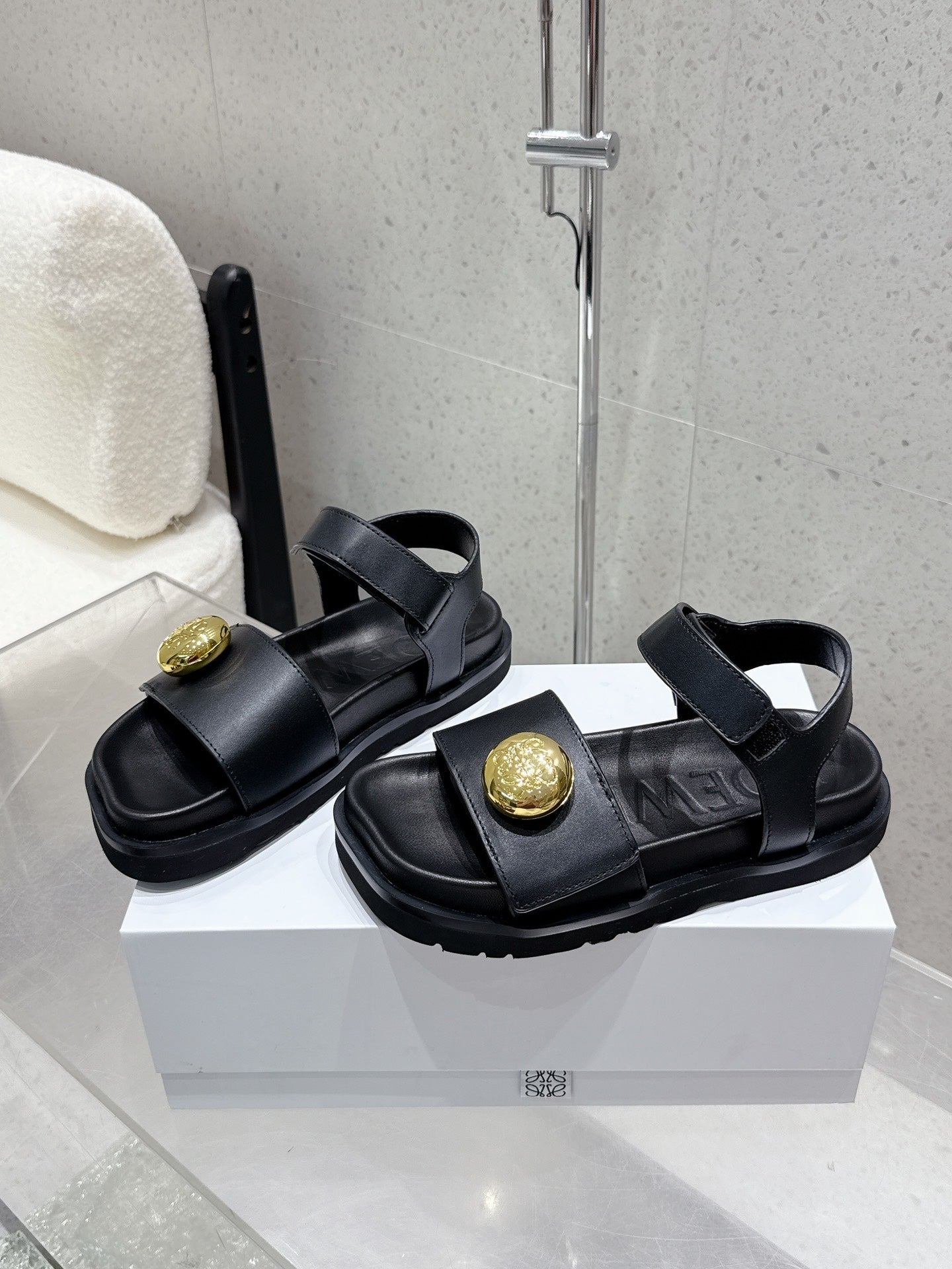 LOEWE 25ss sandals black gold sheepskin