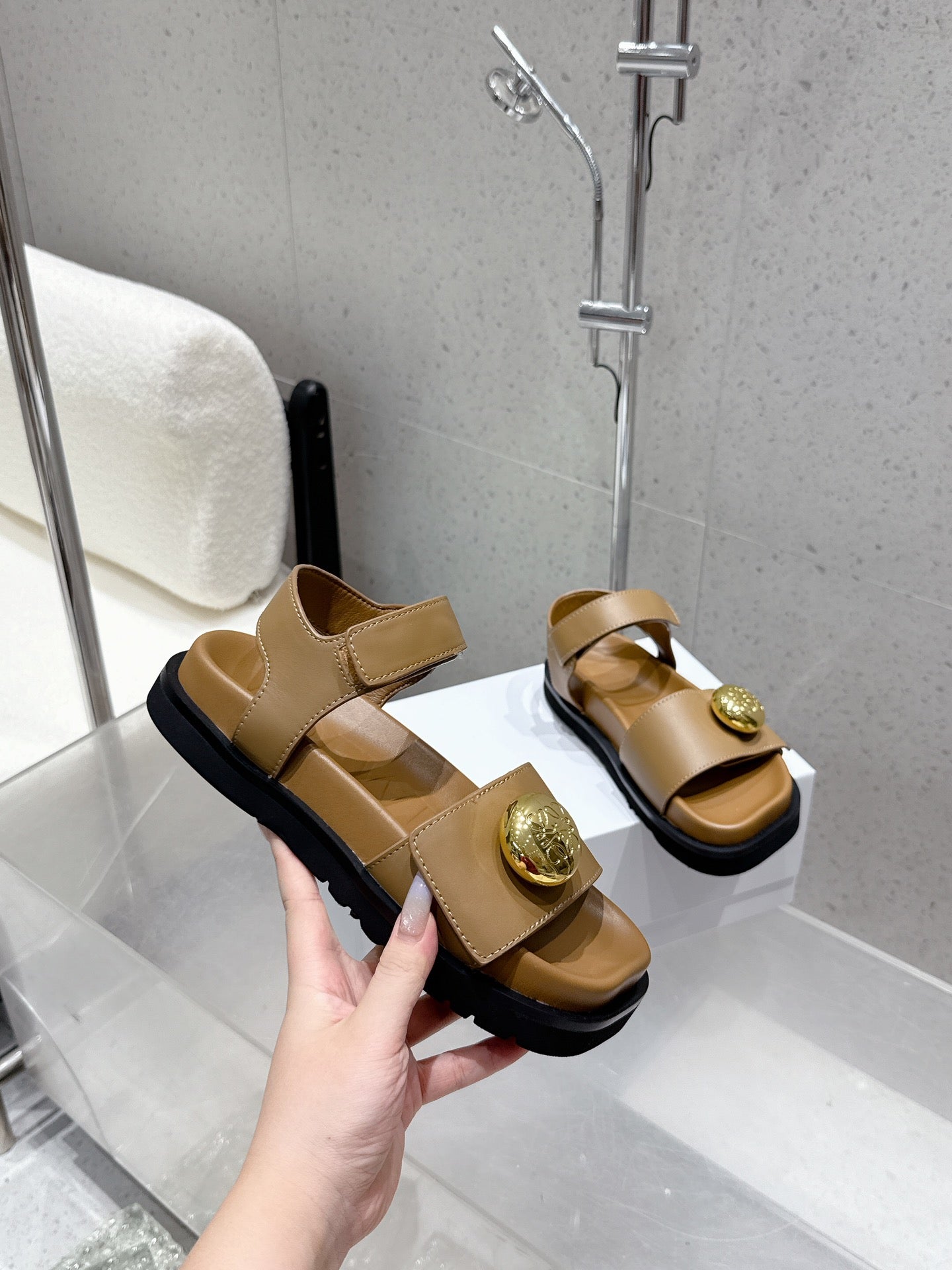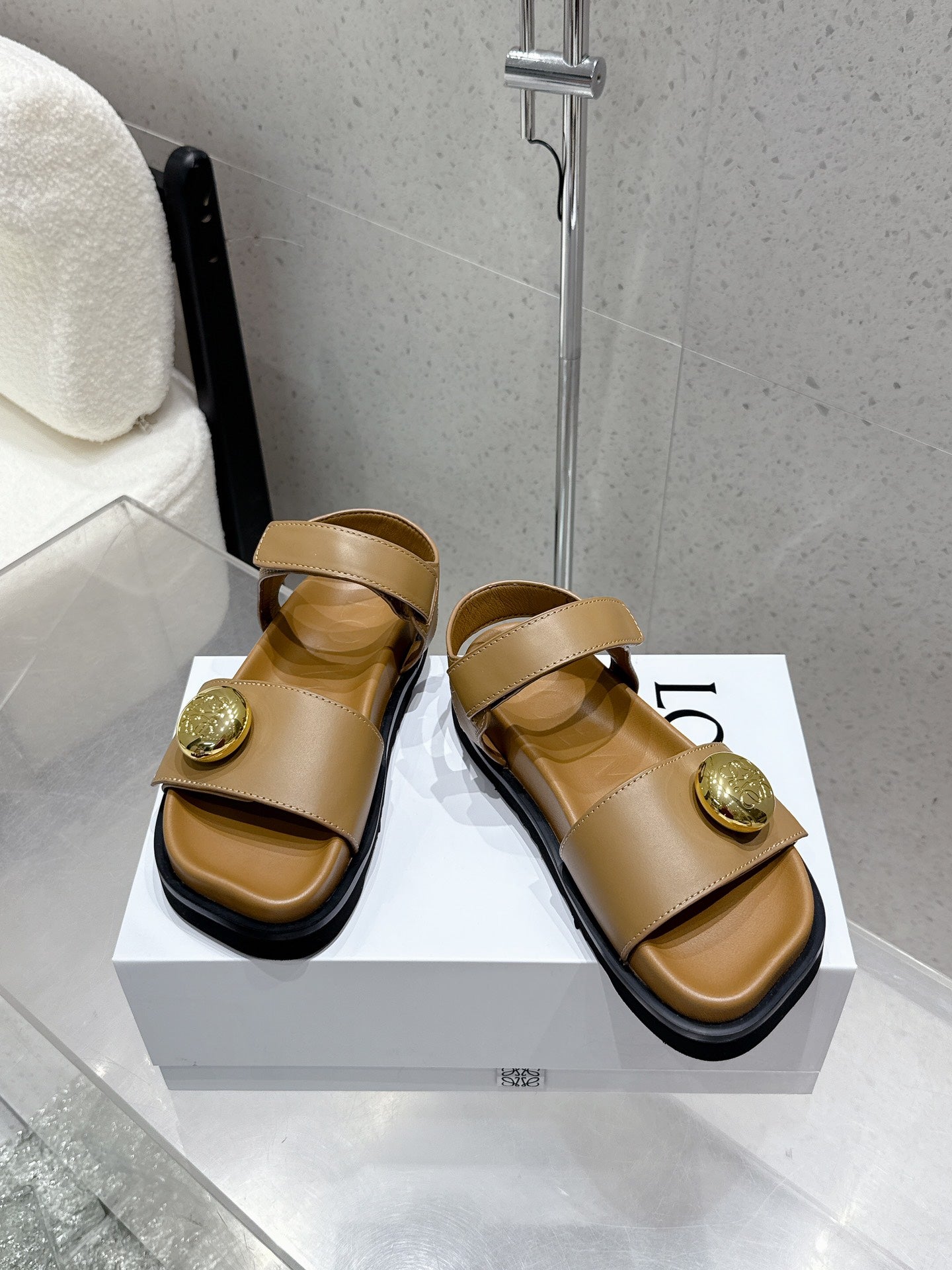 LOEWE 25ss sandals brown gold sheepskin