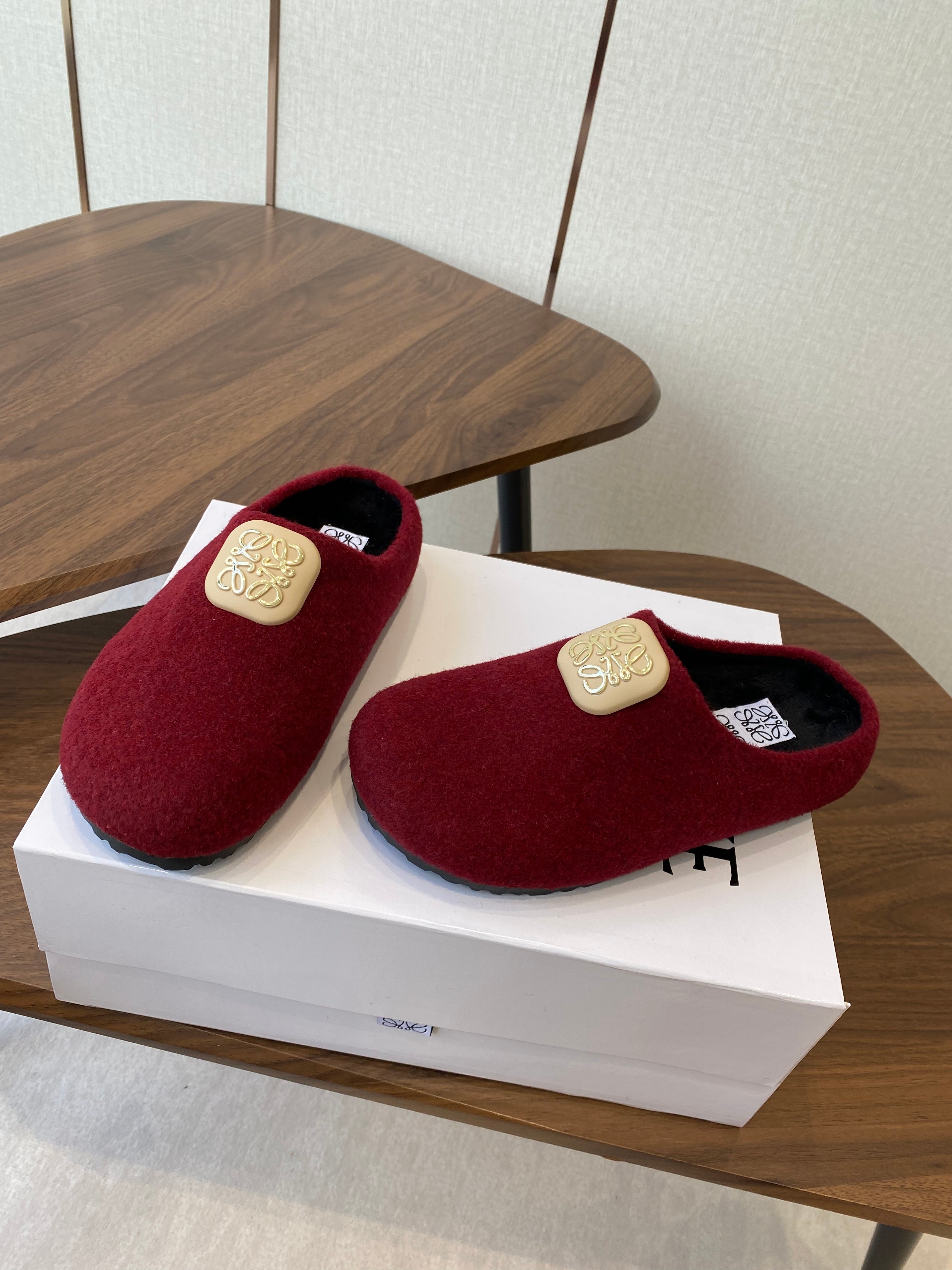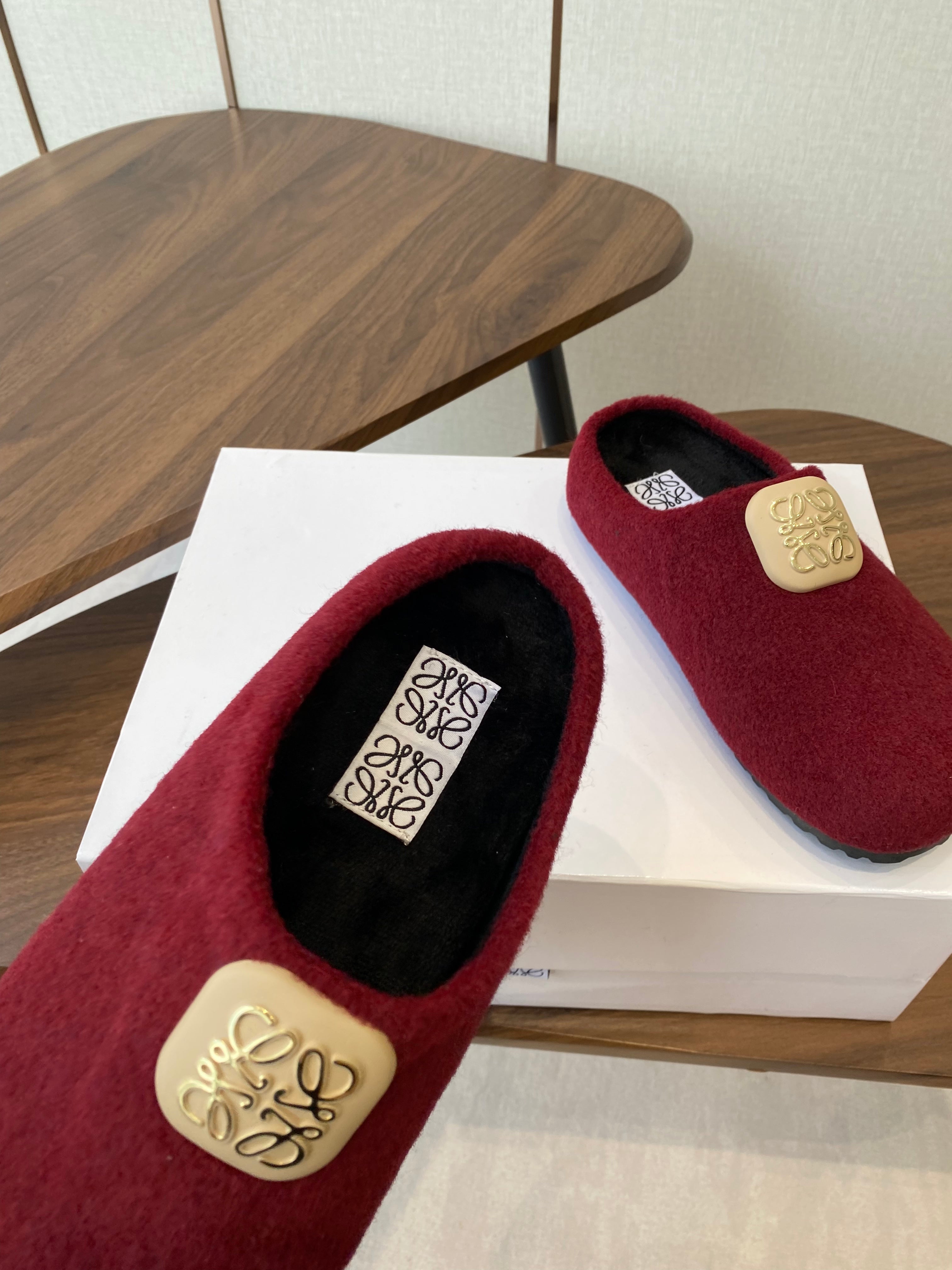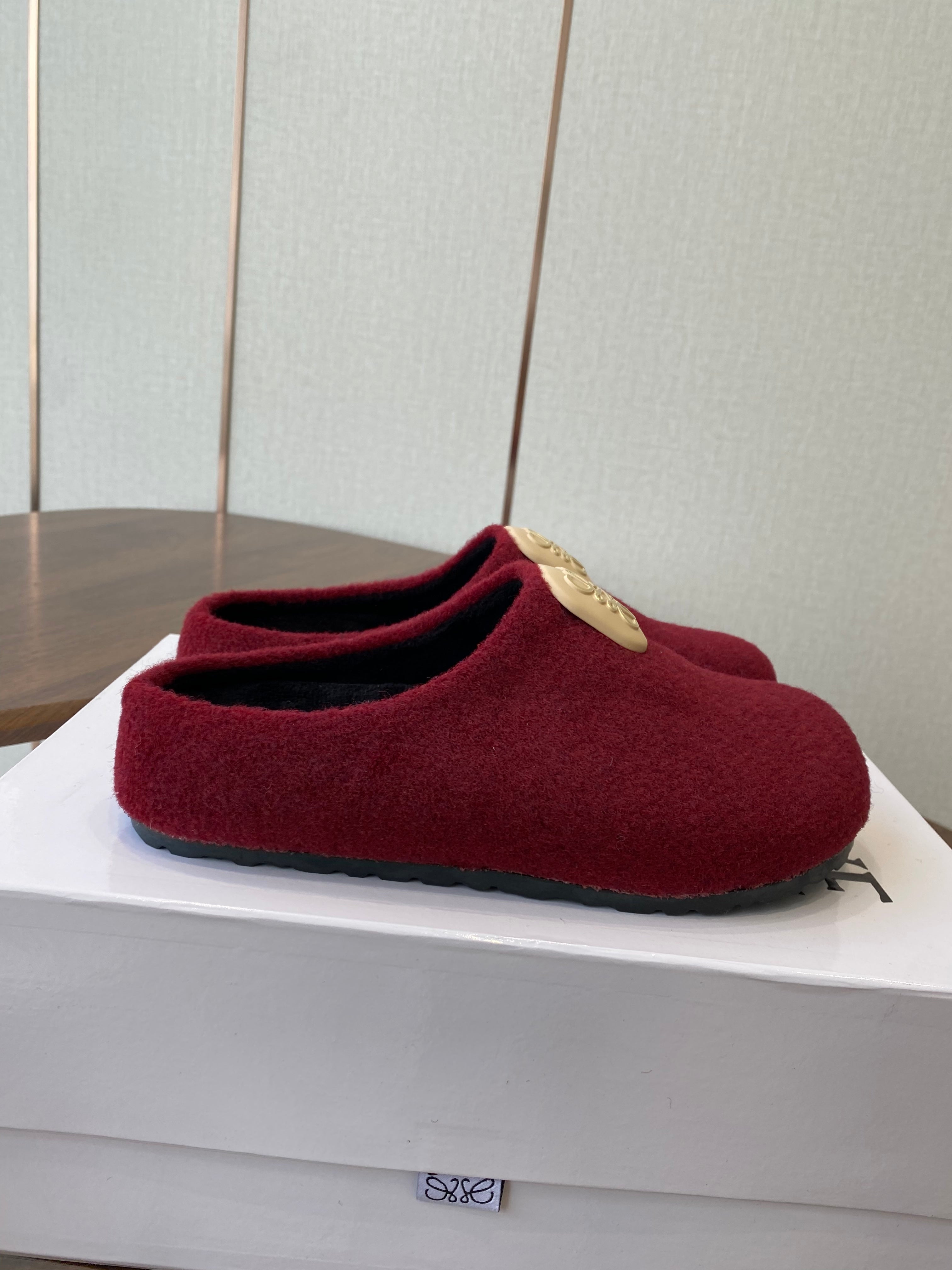 Loewe Birkenstock slippers red wool 477793