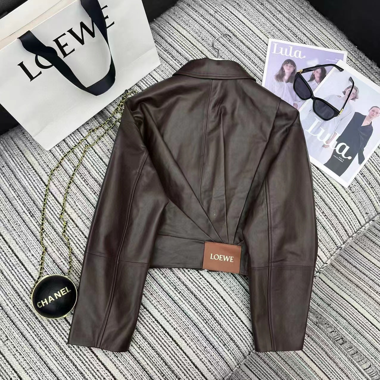 LOEWE Draped Jacket Brown Nappa Lambskin