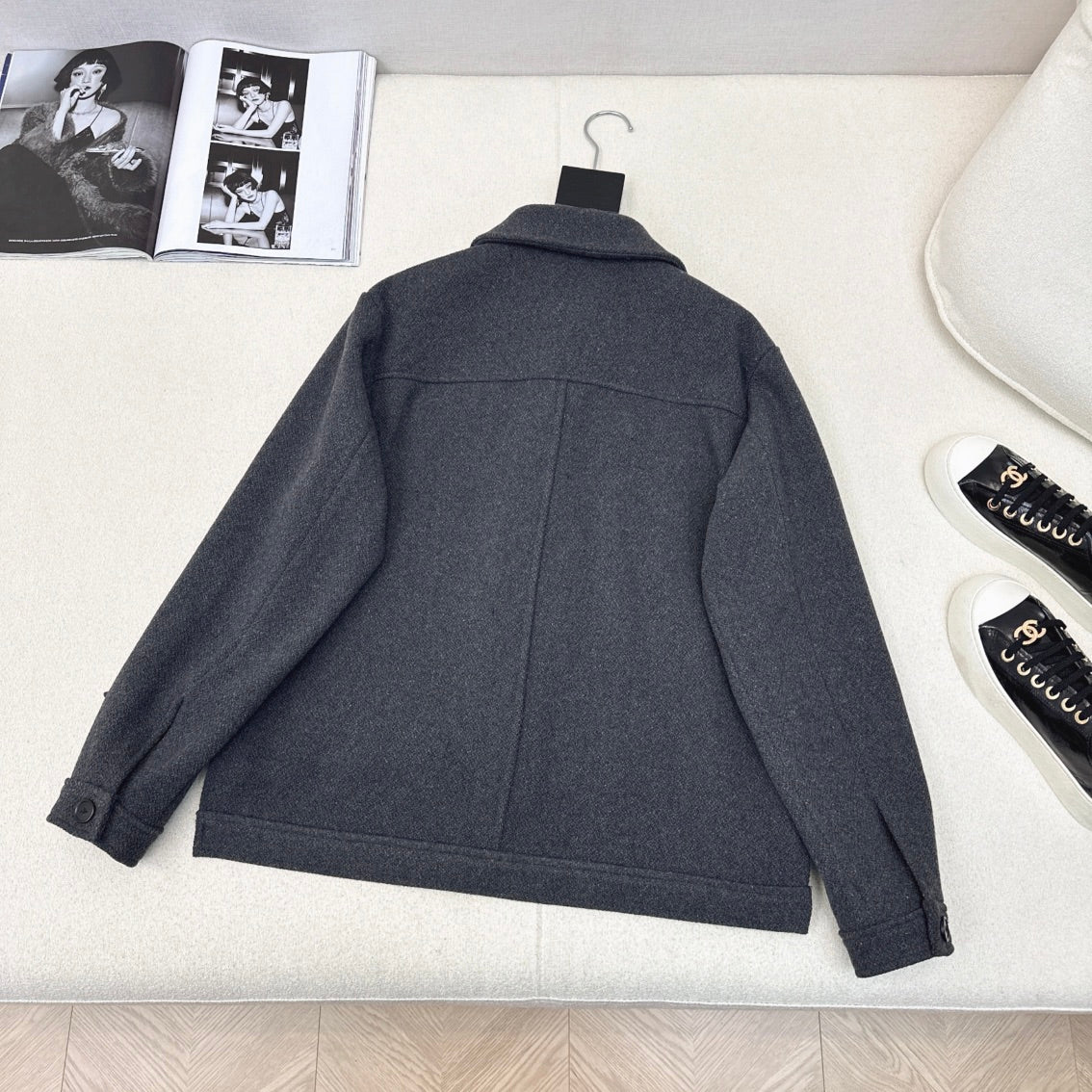 Loewe Logo Embroidered Jacket Gray Polyester Fiber