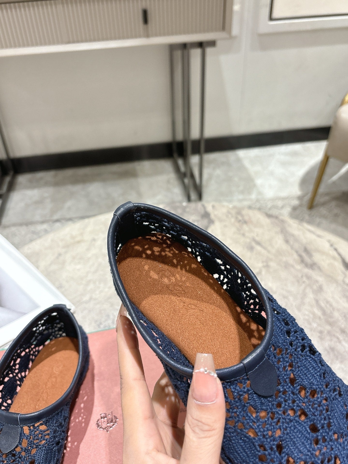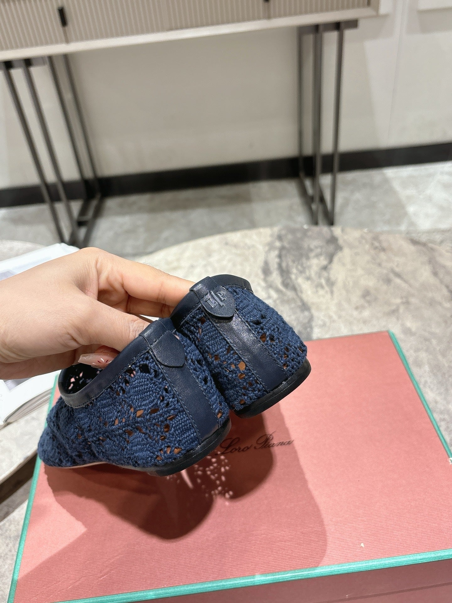 LP hollow knit ballet flats dark blue fabric 379029