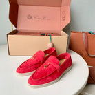 Loro Piana Red Suede Summer Charms Walk Loafers