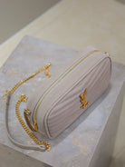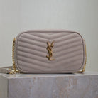 LOU MINI CAMERA BAG 18 IN SILVER PINK SUEDE GOLD HARDWARE