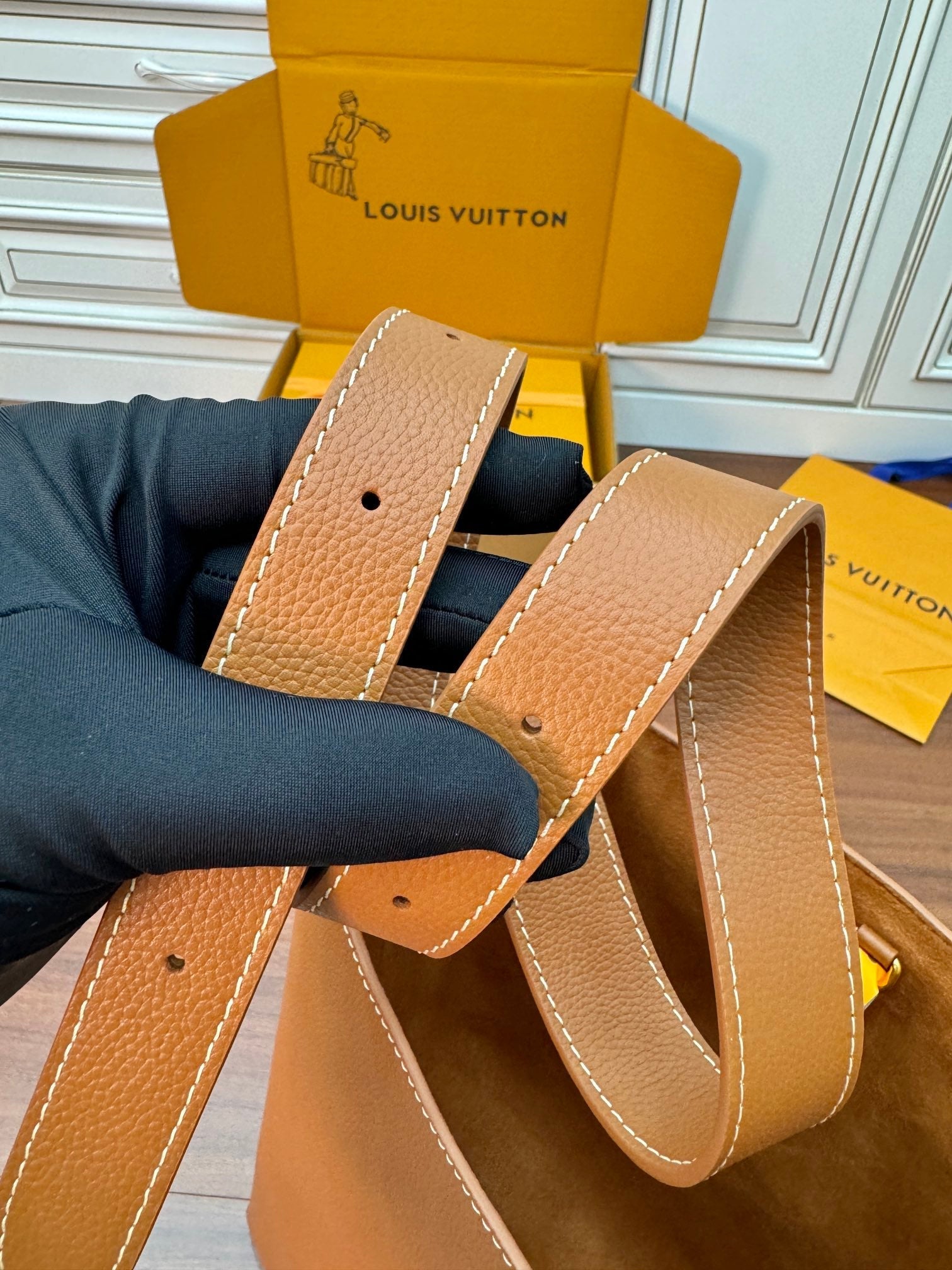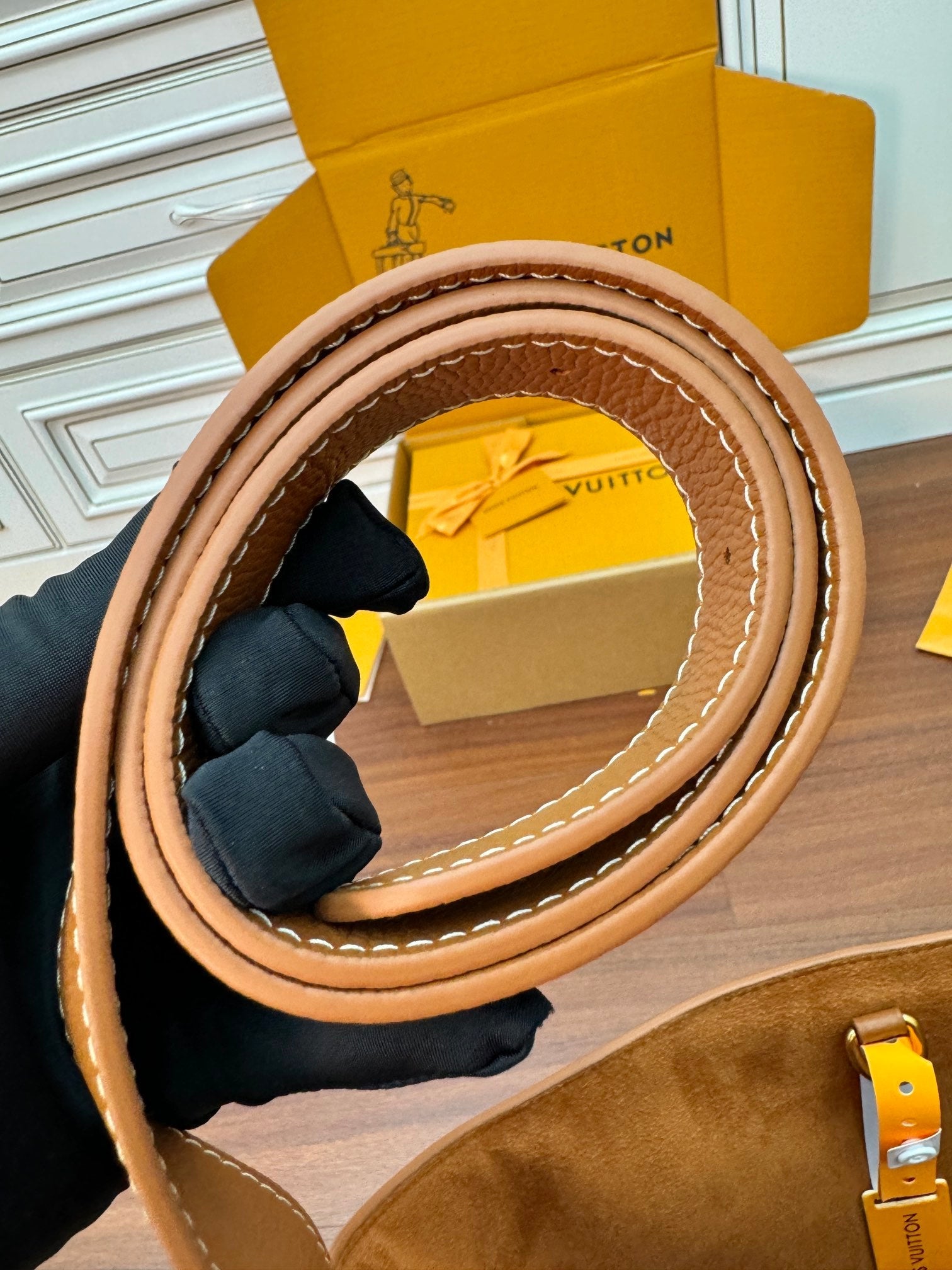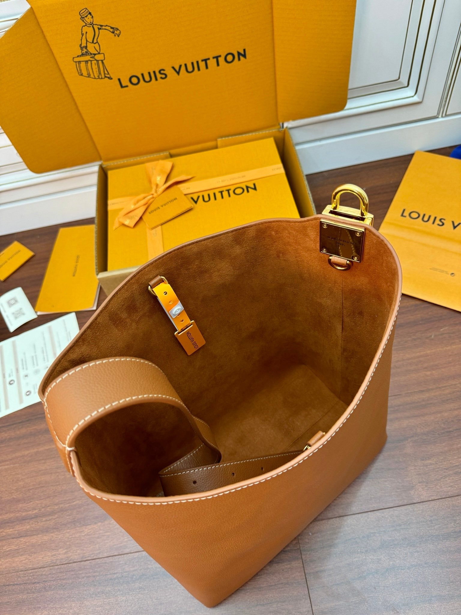 - Material: Grained calfskin, Calfskin trim, Suede calfskin lining