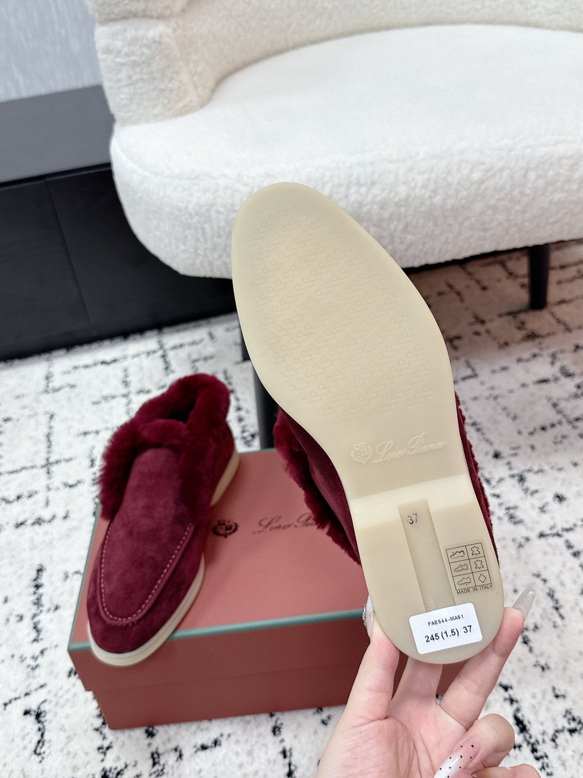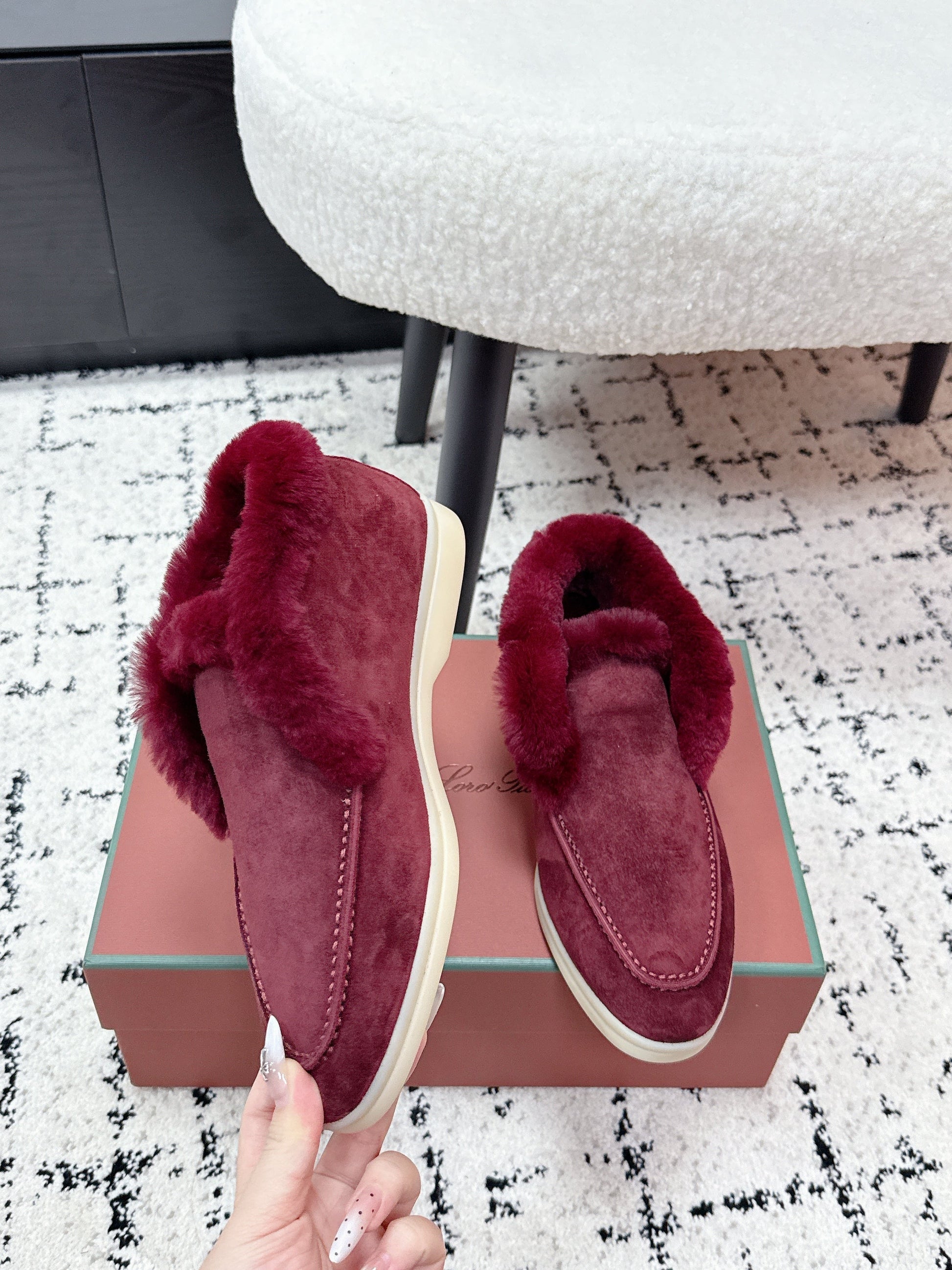 LP 26SS Open Walk Ankle Boot Burgundy Suede Fur 617383
