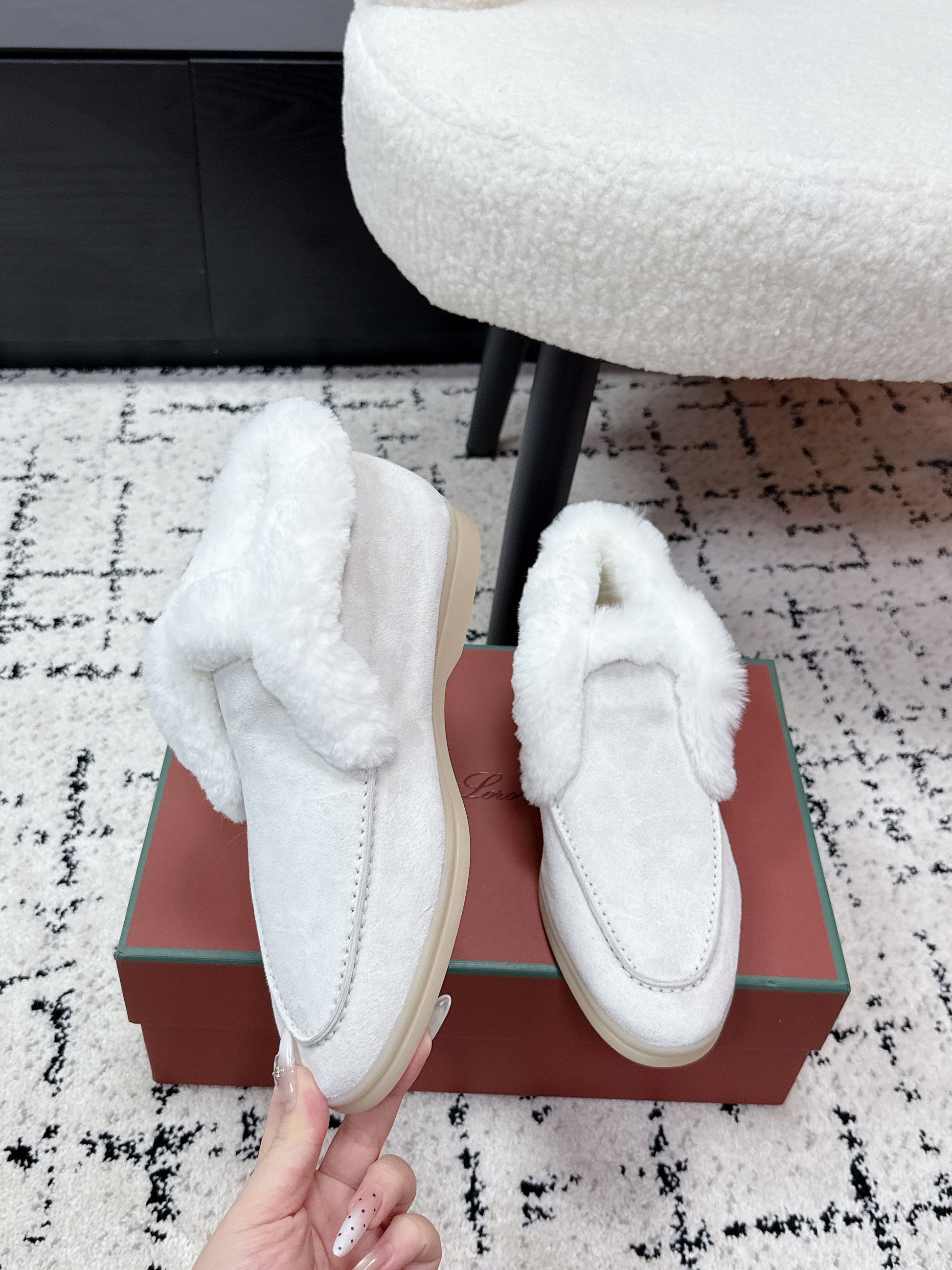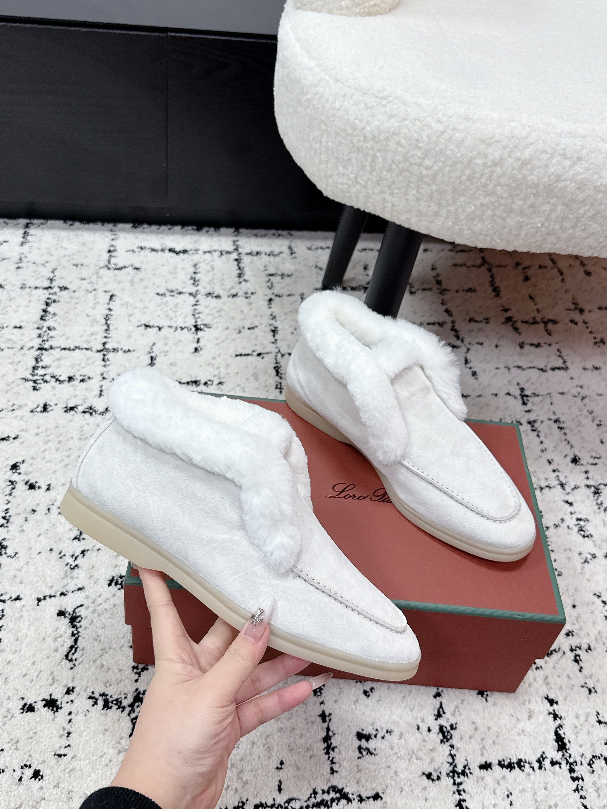 LP 26SS Open Walk Ankle Boot Off-white Suede Fur 617388