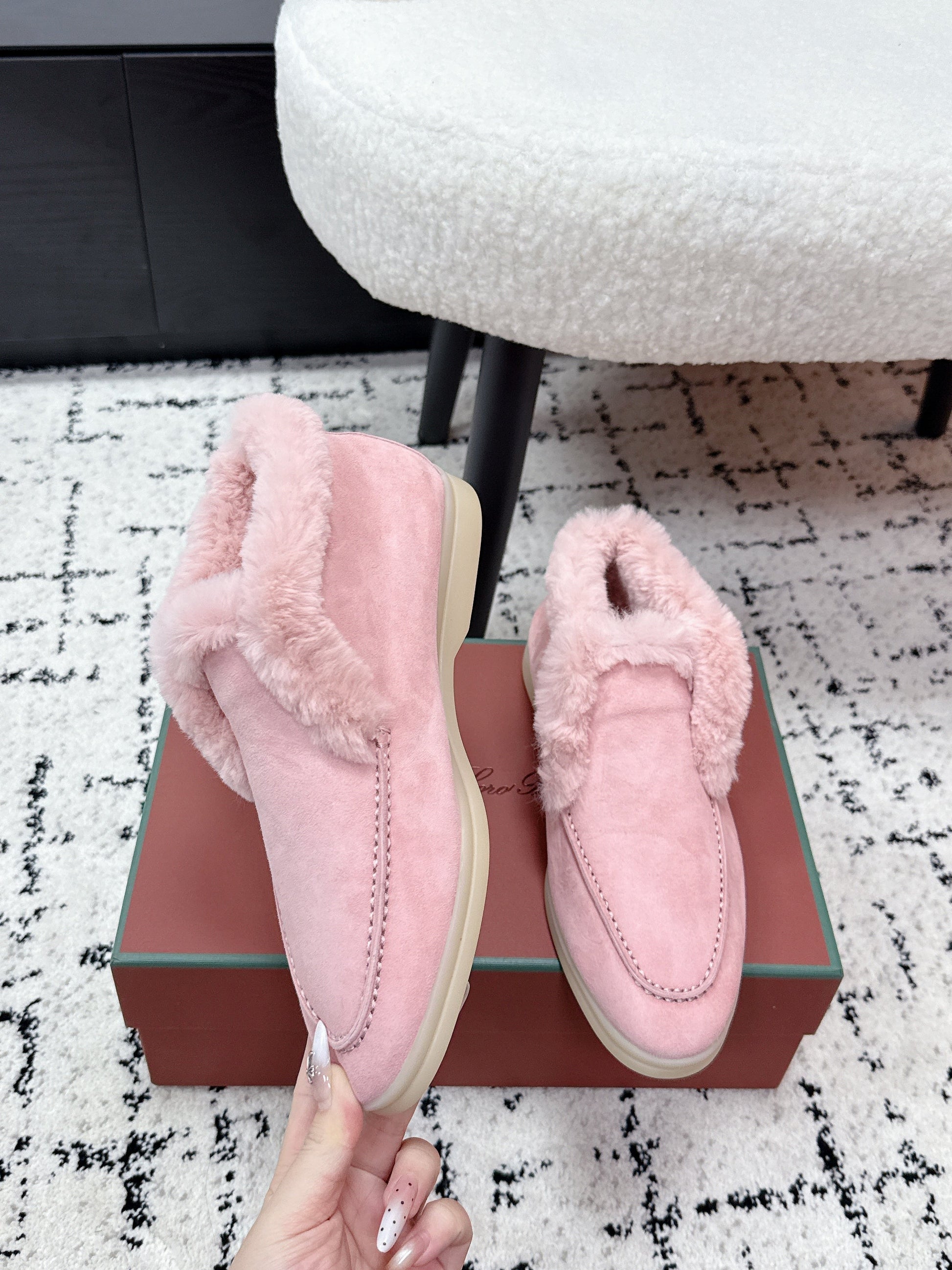 LP 26SS Open Walk Ankle Boot Pink Suede Fur 617381