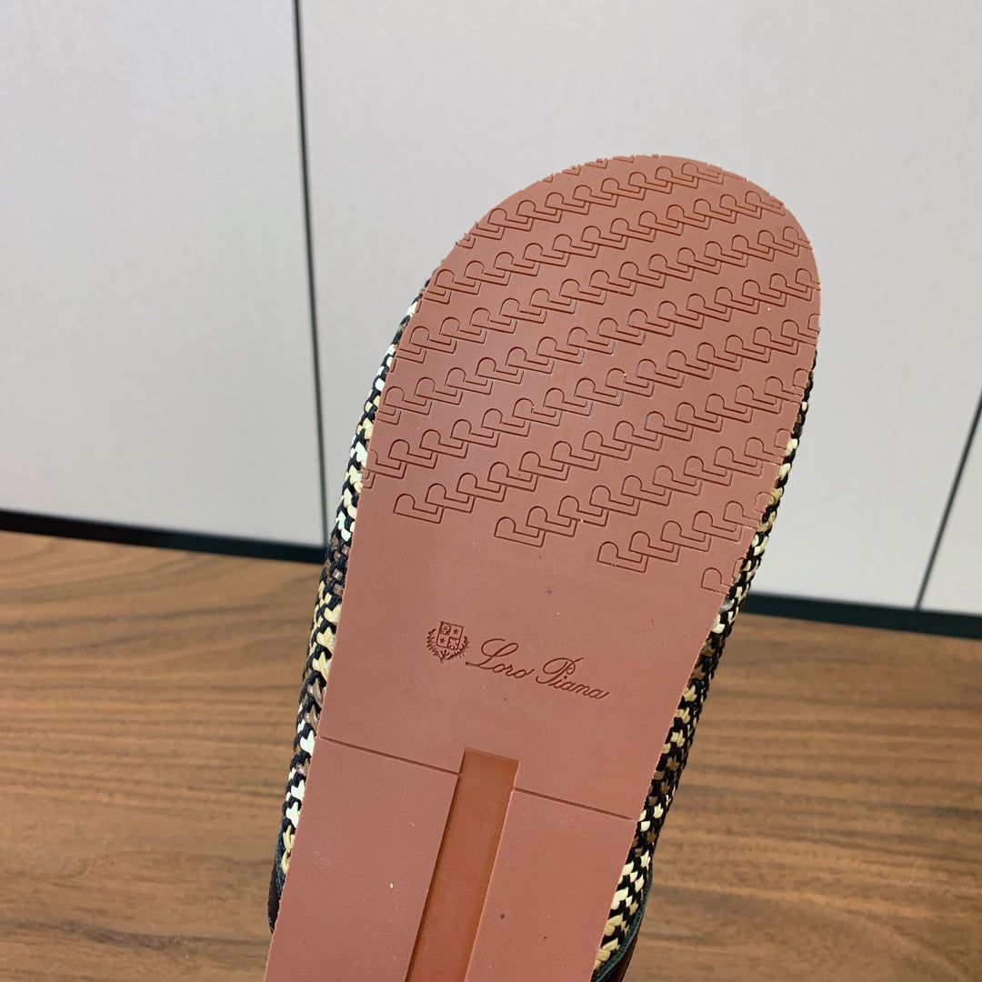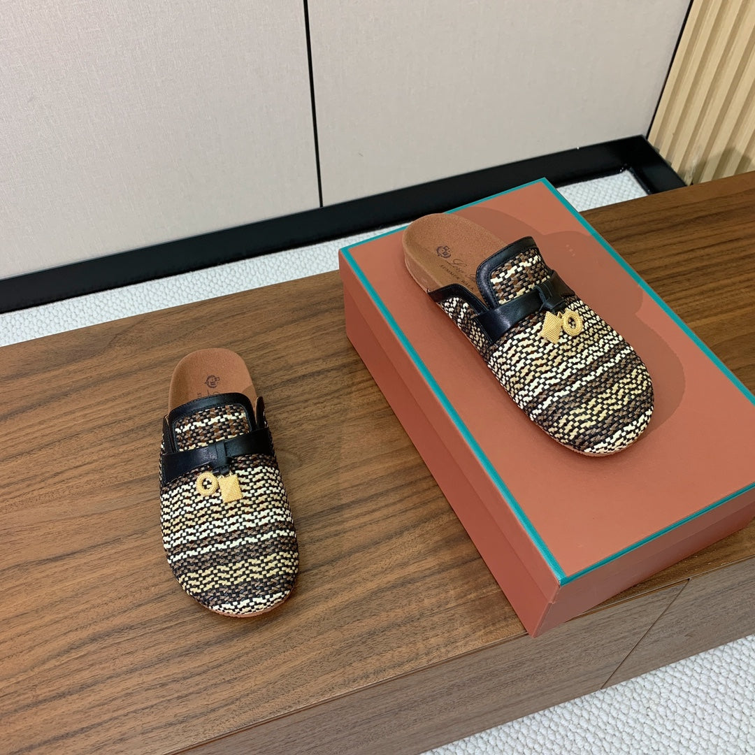 LP Birkenstock slippers black beige raffia calfskin 386726