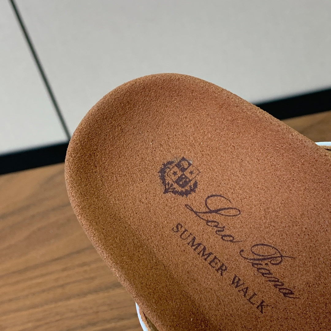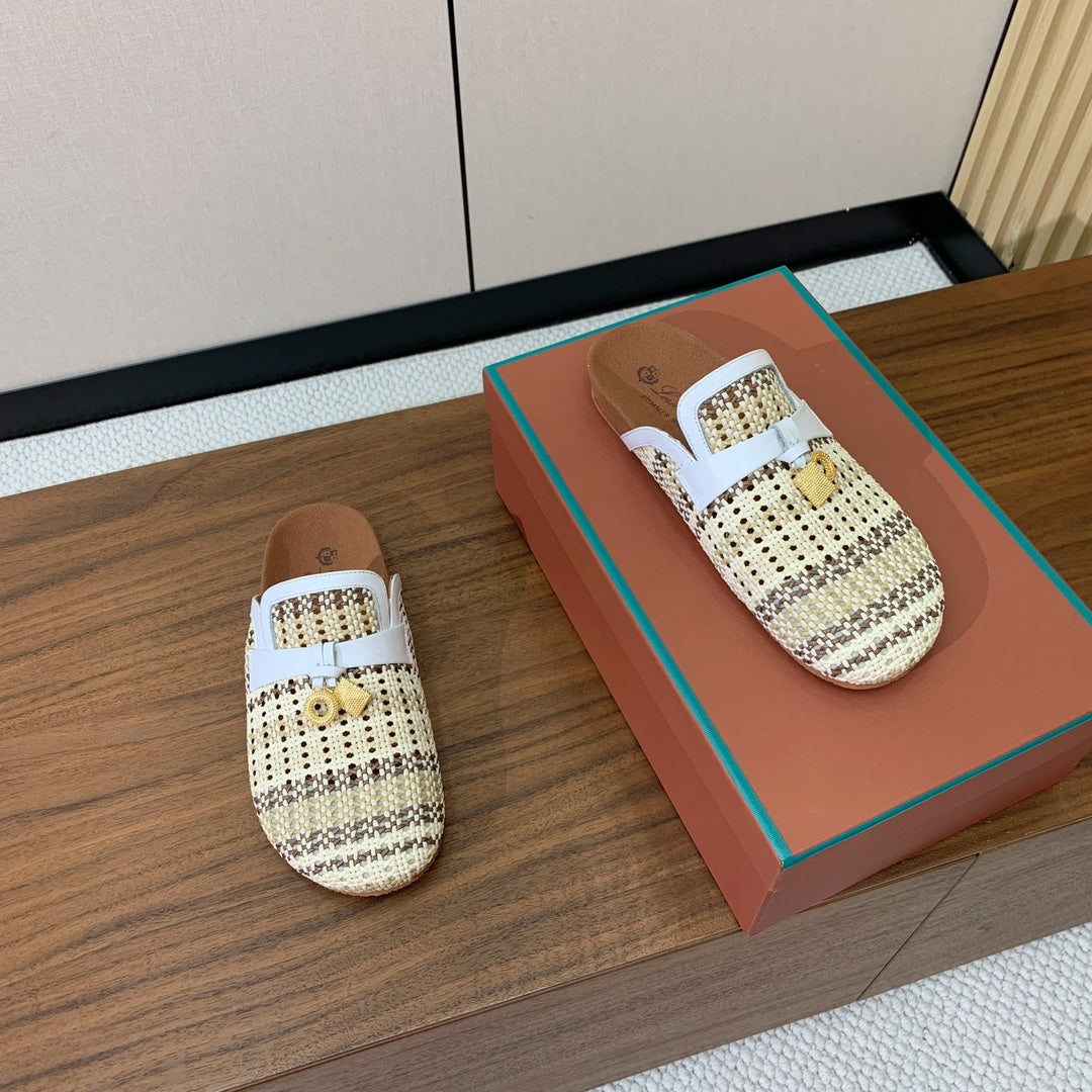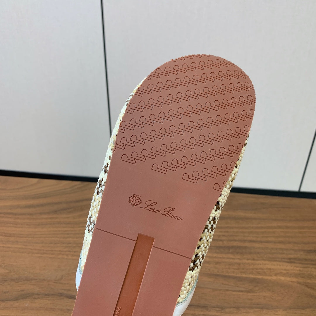 LP Birkenstock slippers white beige brown raffia calfskin 386727