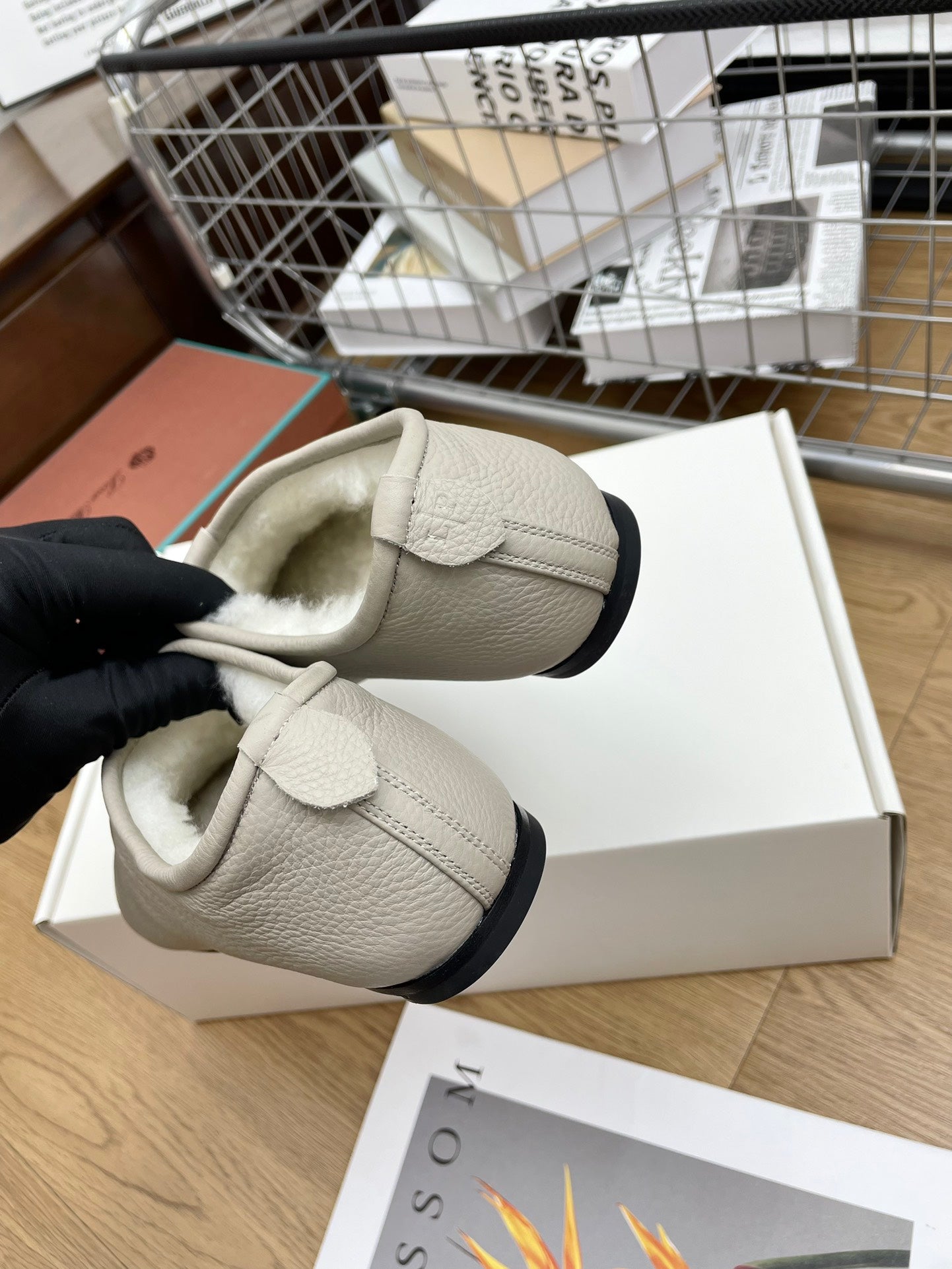 LP Cocooning Floaty Flat Grey White Wool Fleece Lining And Cowhide 989987