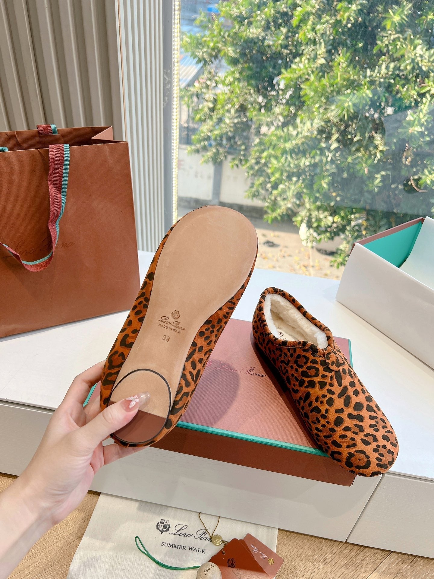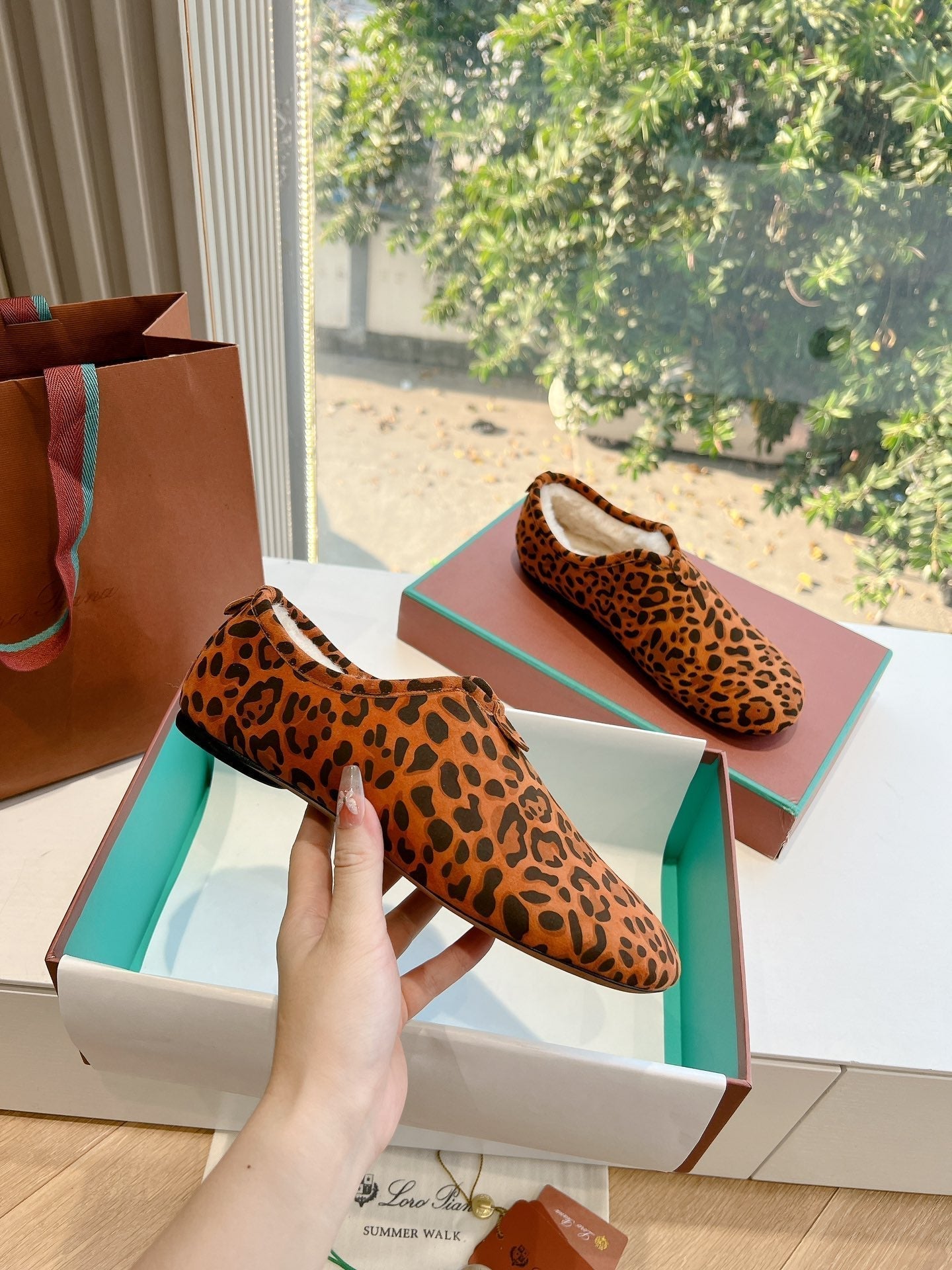 LP Cocooning Floaty Flat Orange Black Leopard Print Wool Fleece Lining And Suede 992982