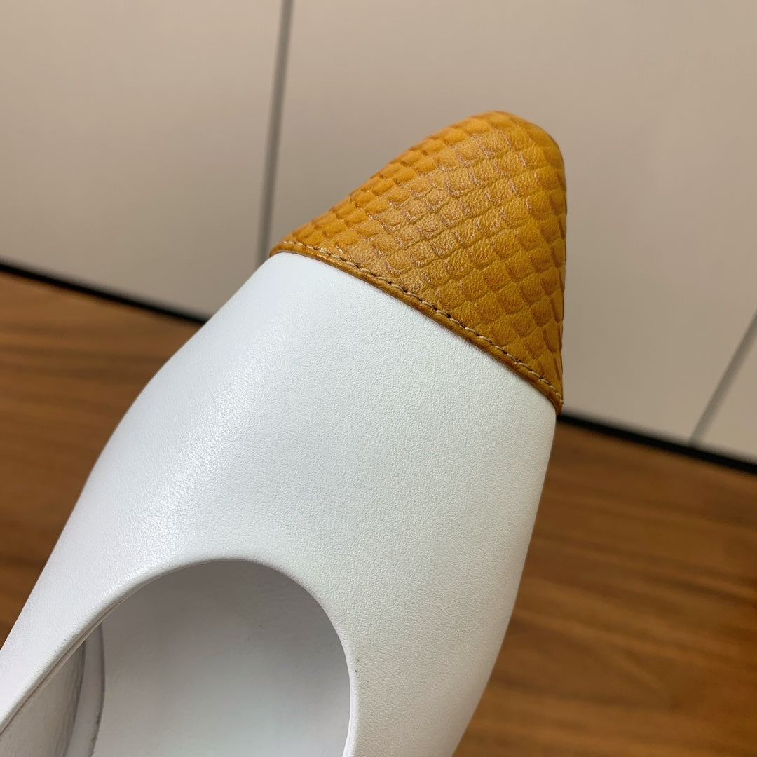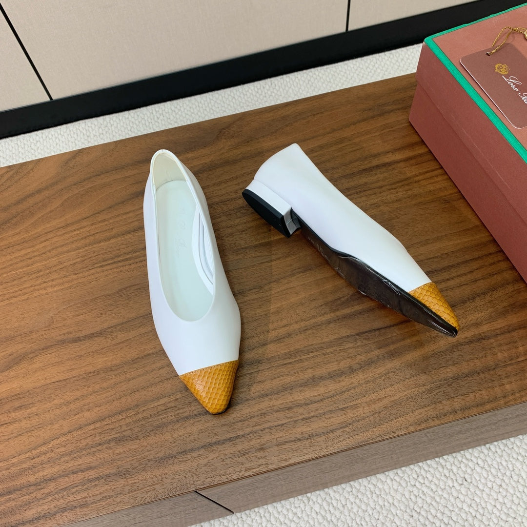LP Rebecca Ballet Flats In White Mix Yellow Brown Cowhide 984358