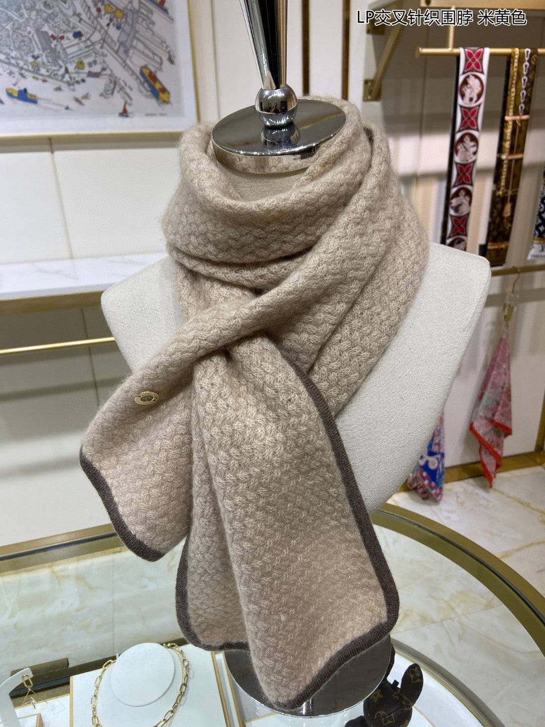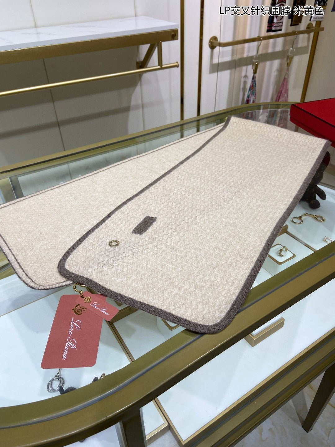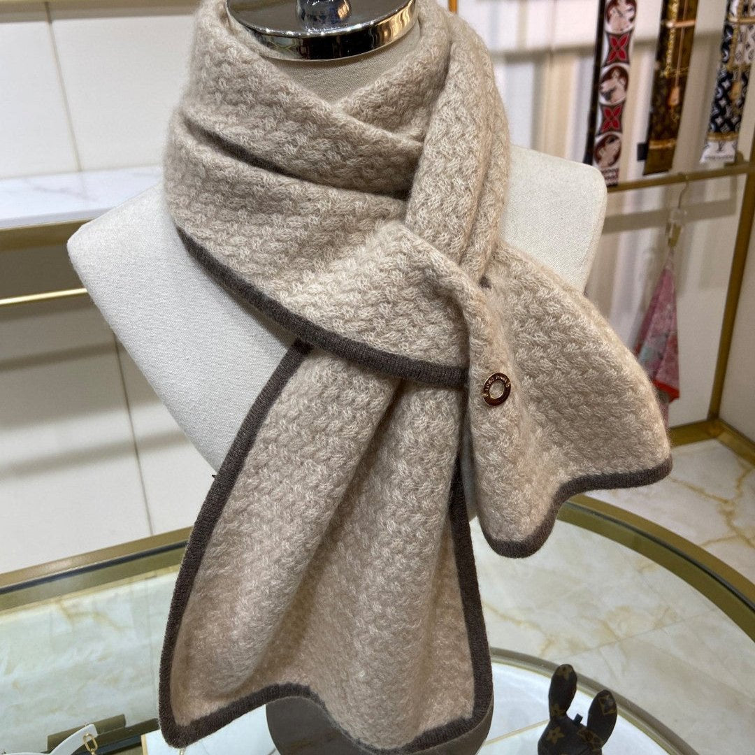 LP Scarf 125 CM In Light Beige With Earth Brown Border Cashmere 201759