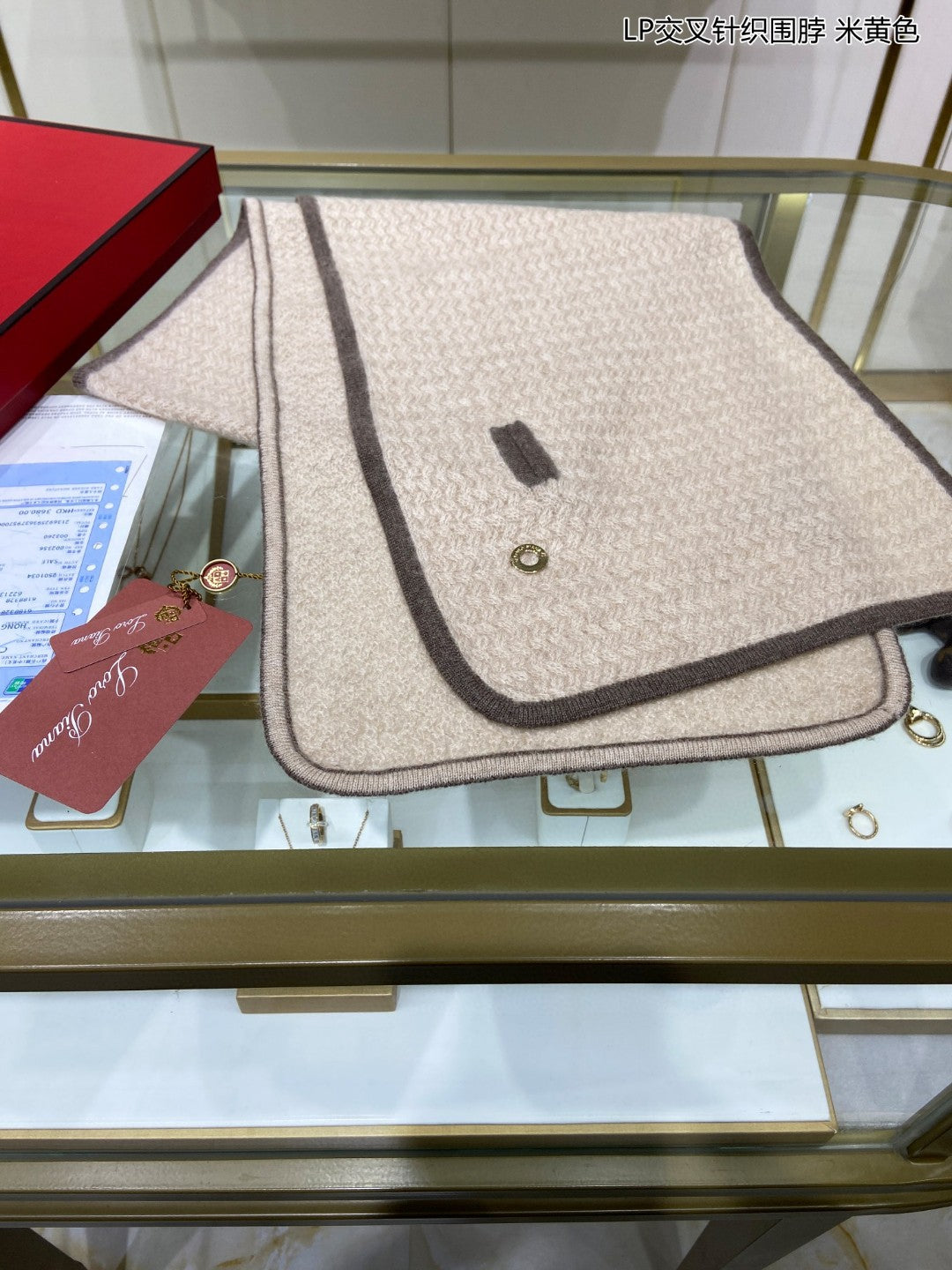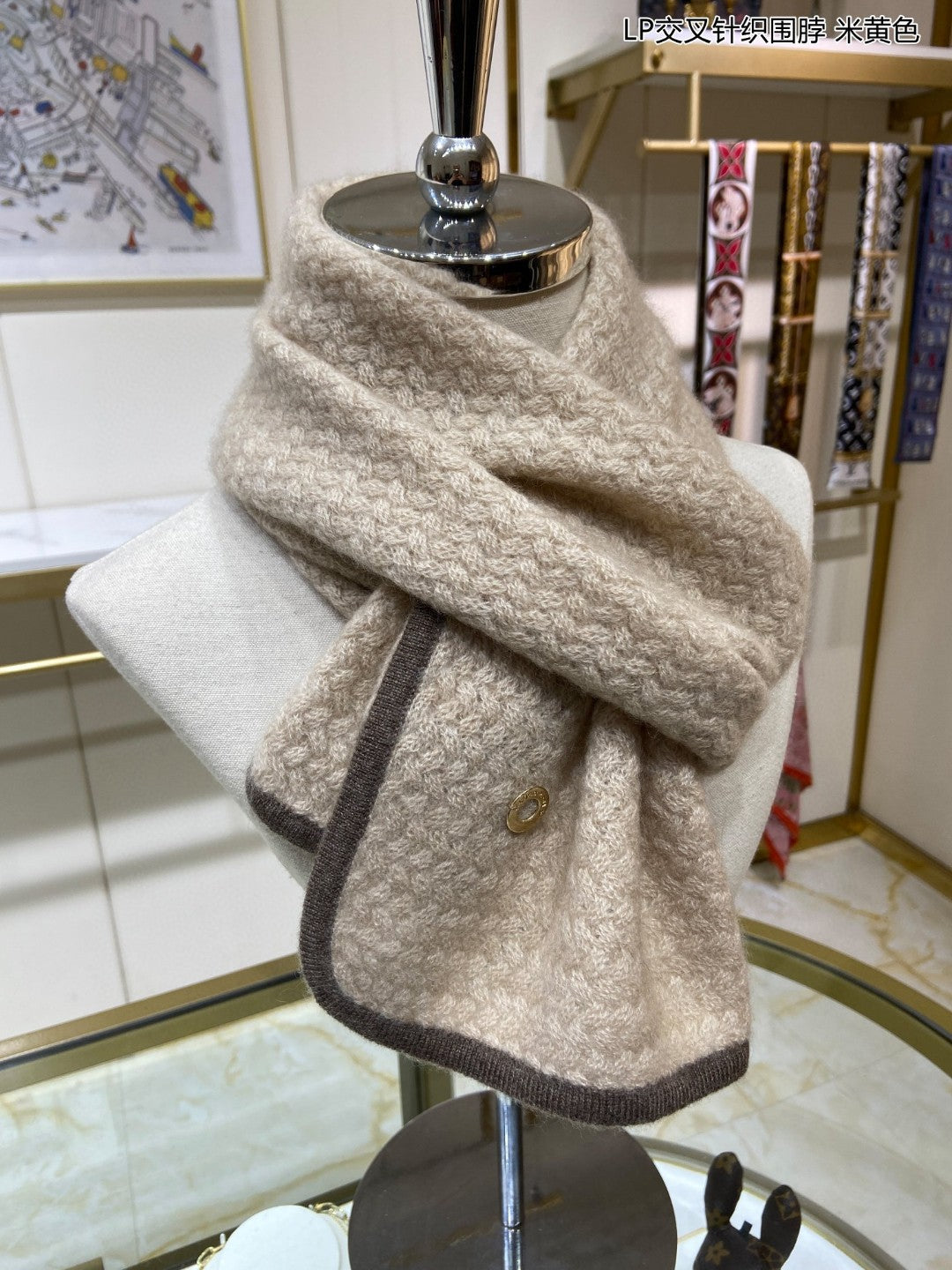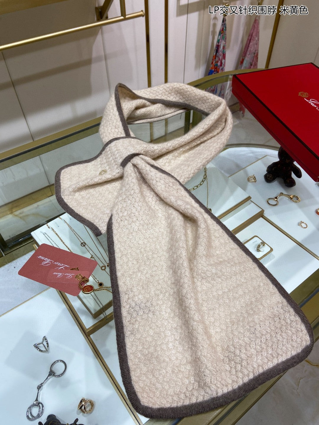 LP Scarf 125 CM In Light Beige With Earth Brown Border Cashmere 201759