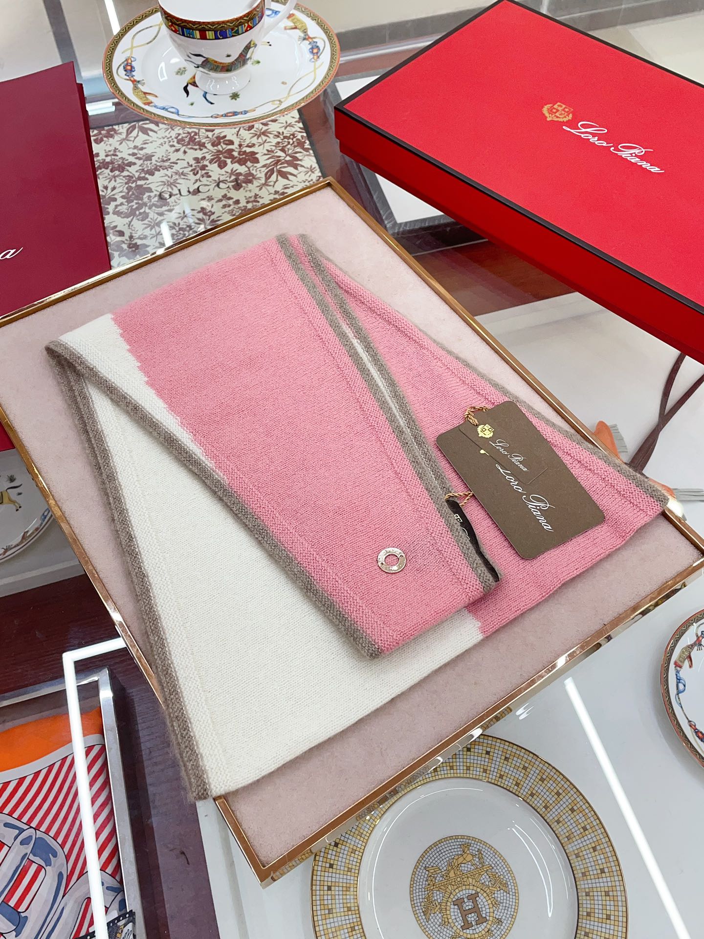LP Yodo Scarf 150 CM In White Mix Pink Cashmere 130488
