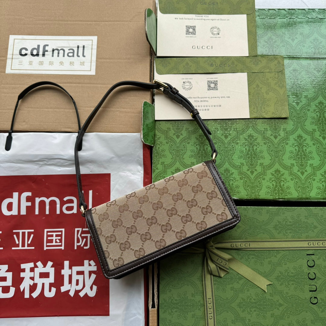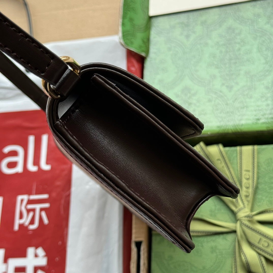 LUCE MINI SHOULDER BAG 20 IN BEIGE CANVAS AND DARK BROWN CALFSKIN TRIM GOLD HARDWARE