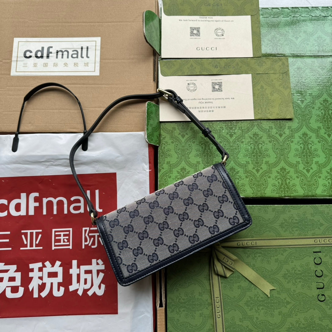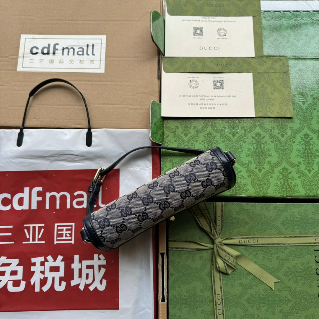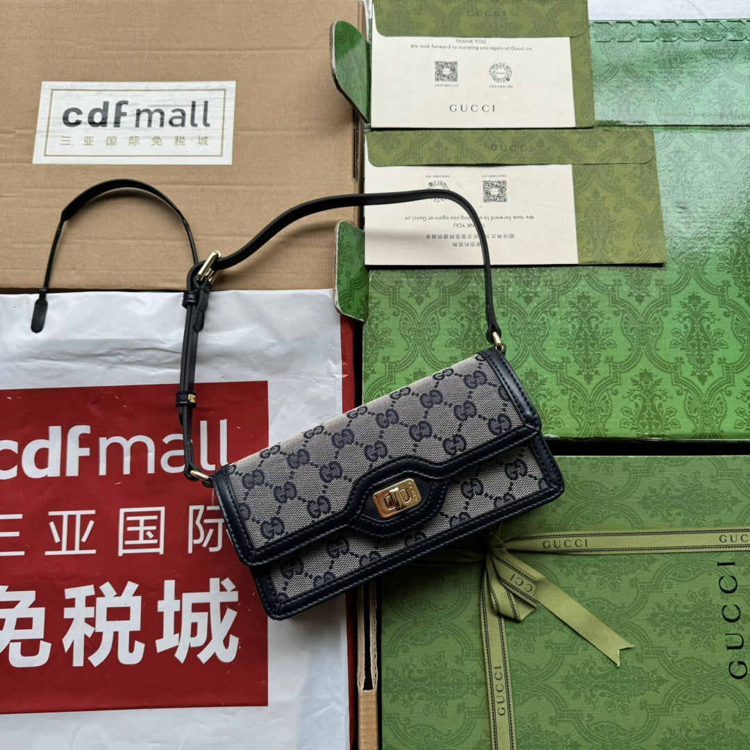 LUCE MINI SHOULDER BAG 20 IN LIGHT GRAY CANVAS AND BLACK CALFSKIN TRIM GOLD HARDWARE