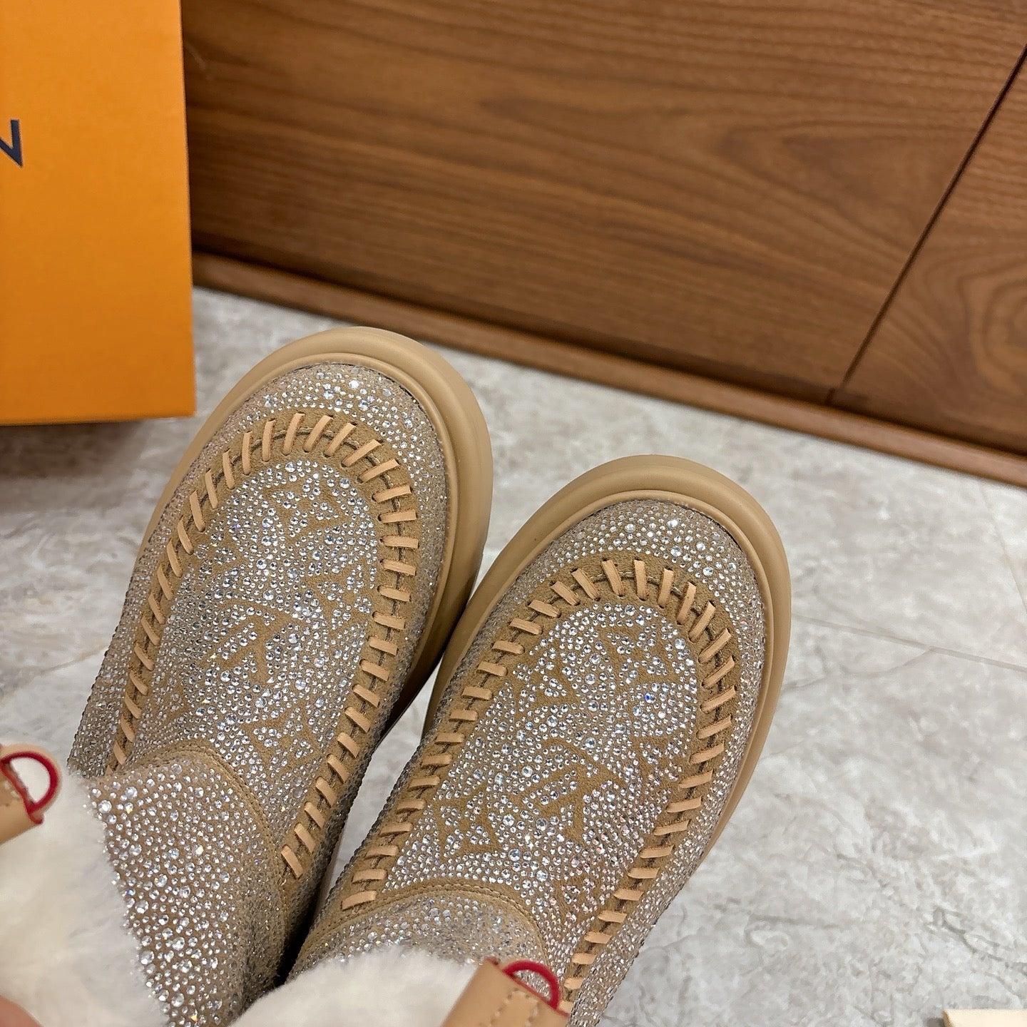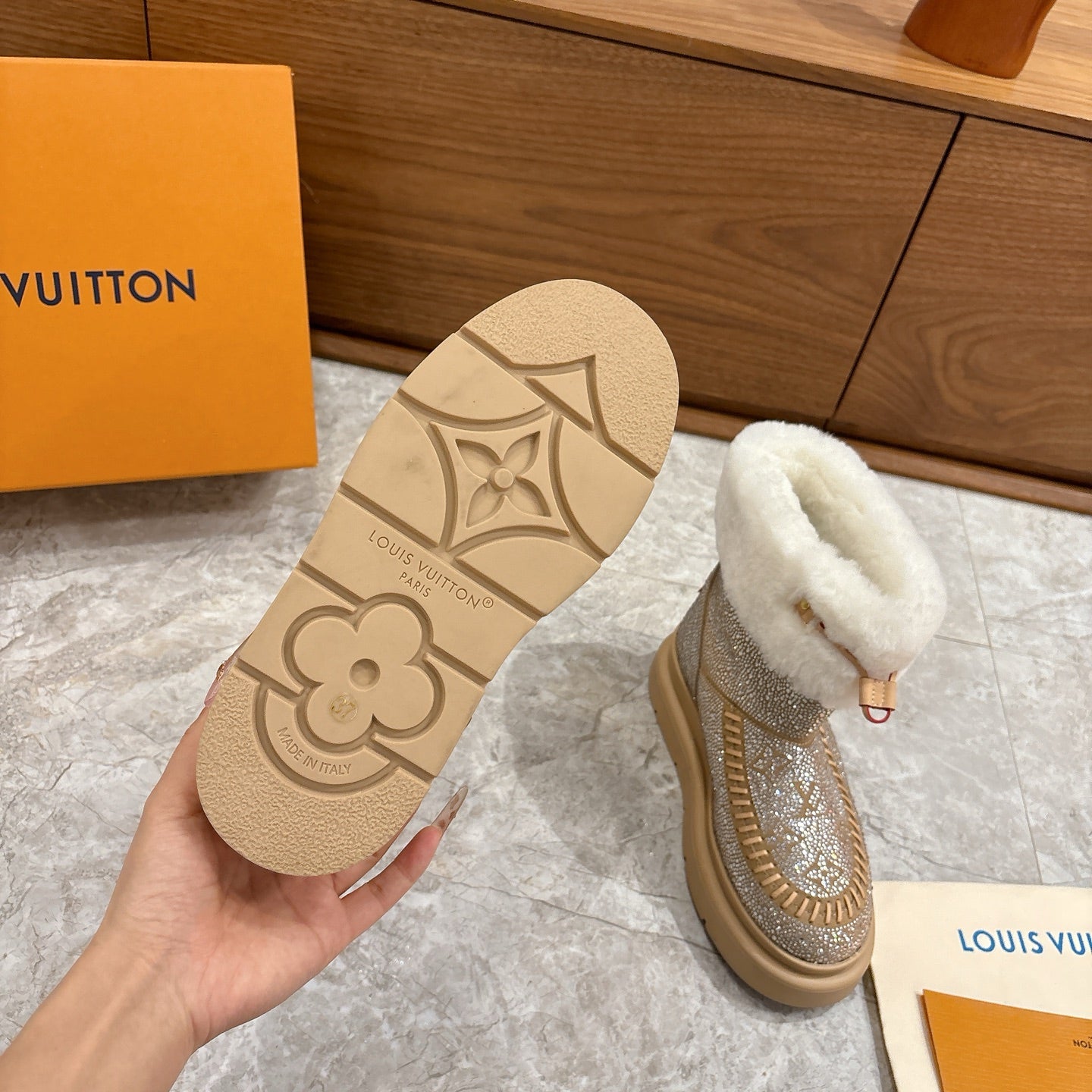 LV 2026 Cortina Ankle Boot Silver Beige White Silver Sequin Wool 594926
