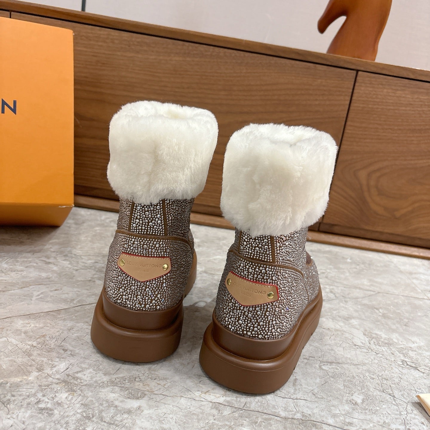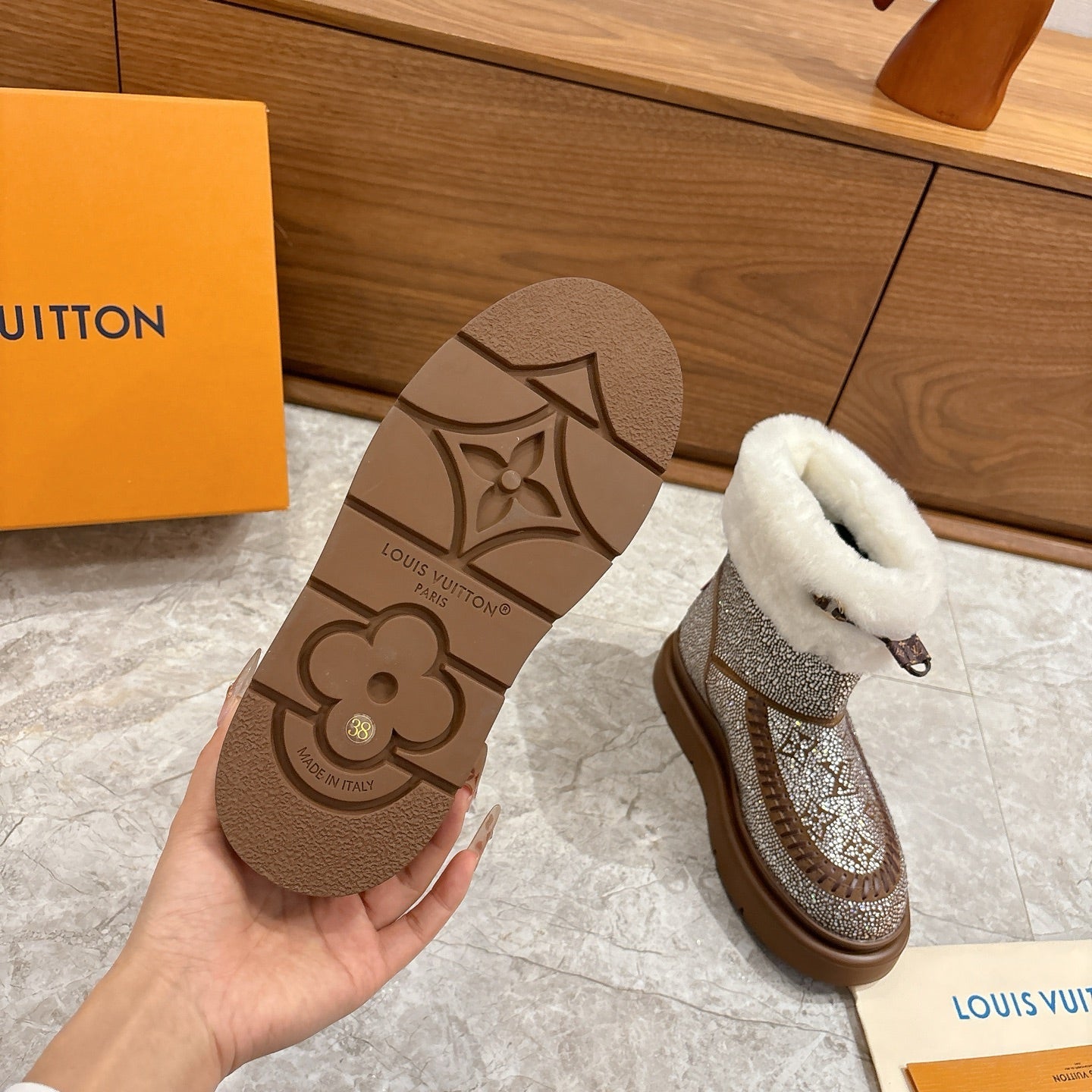 LV 2026 Cortina Ankle Boot Silver Brown White Silver Sequin Wool 594927
