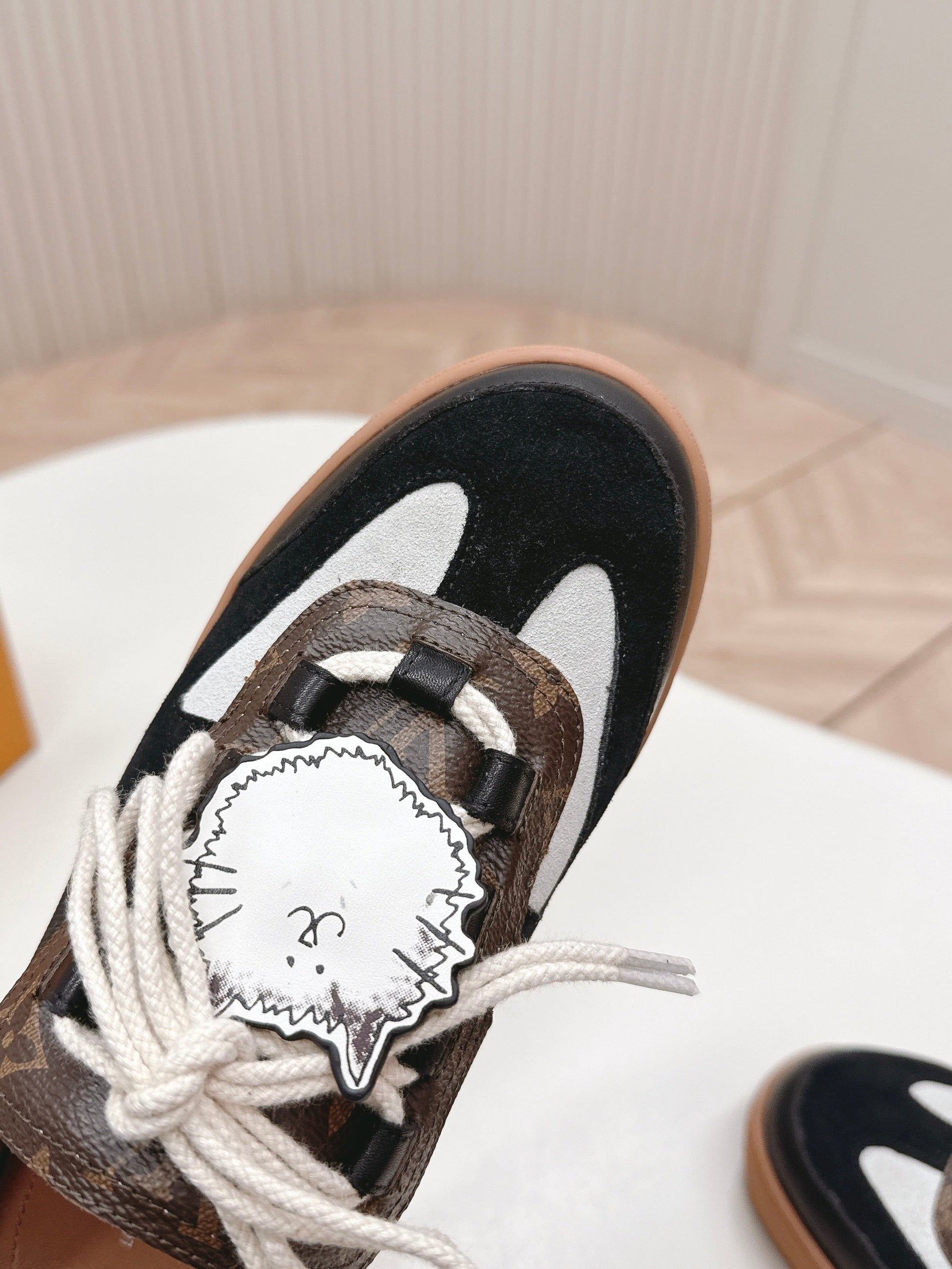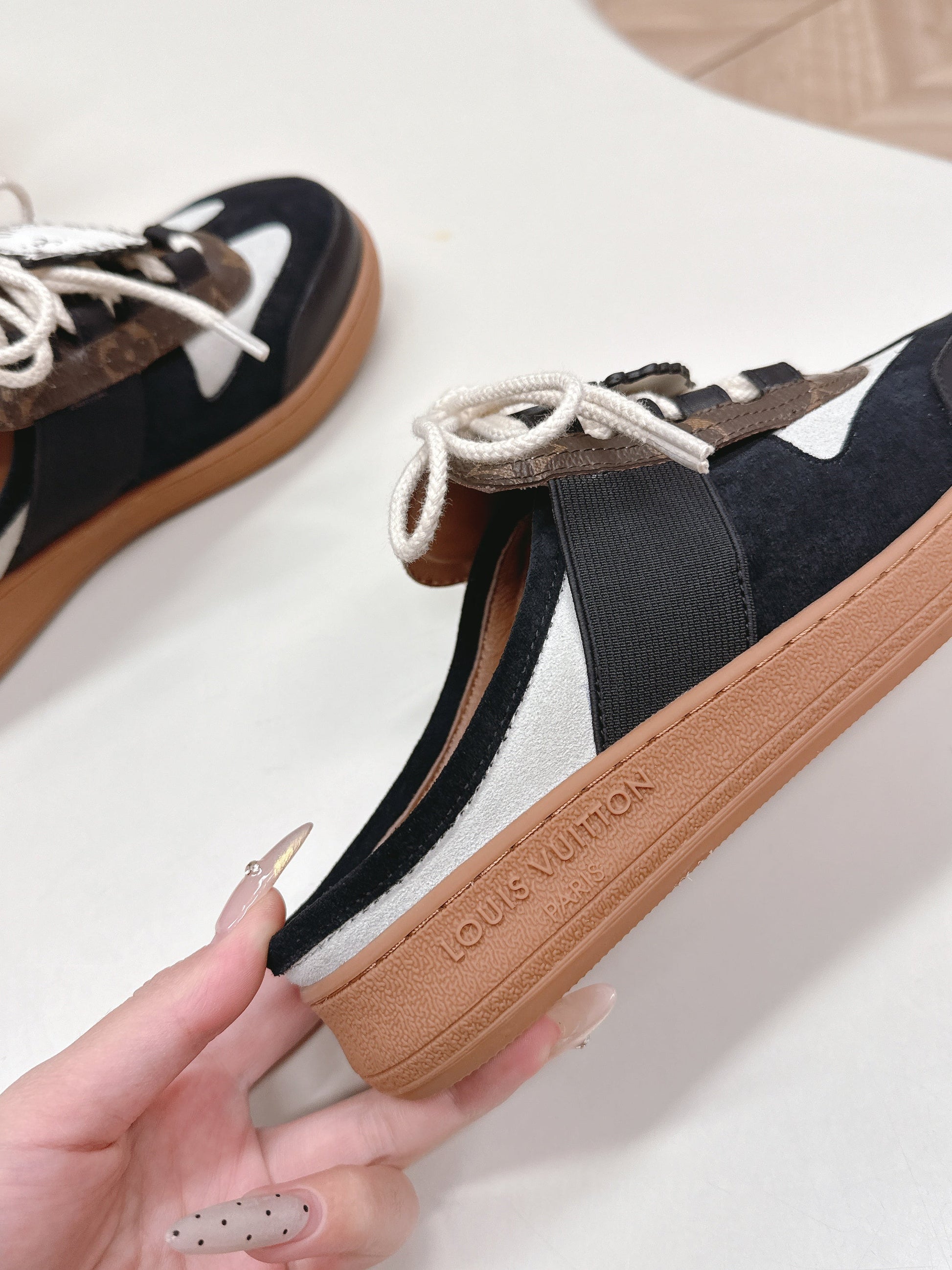 LV 2026 Lous Open Back Sneaker Black Brown Suede Canvas Leather 595415