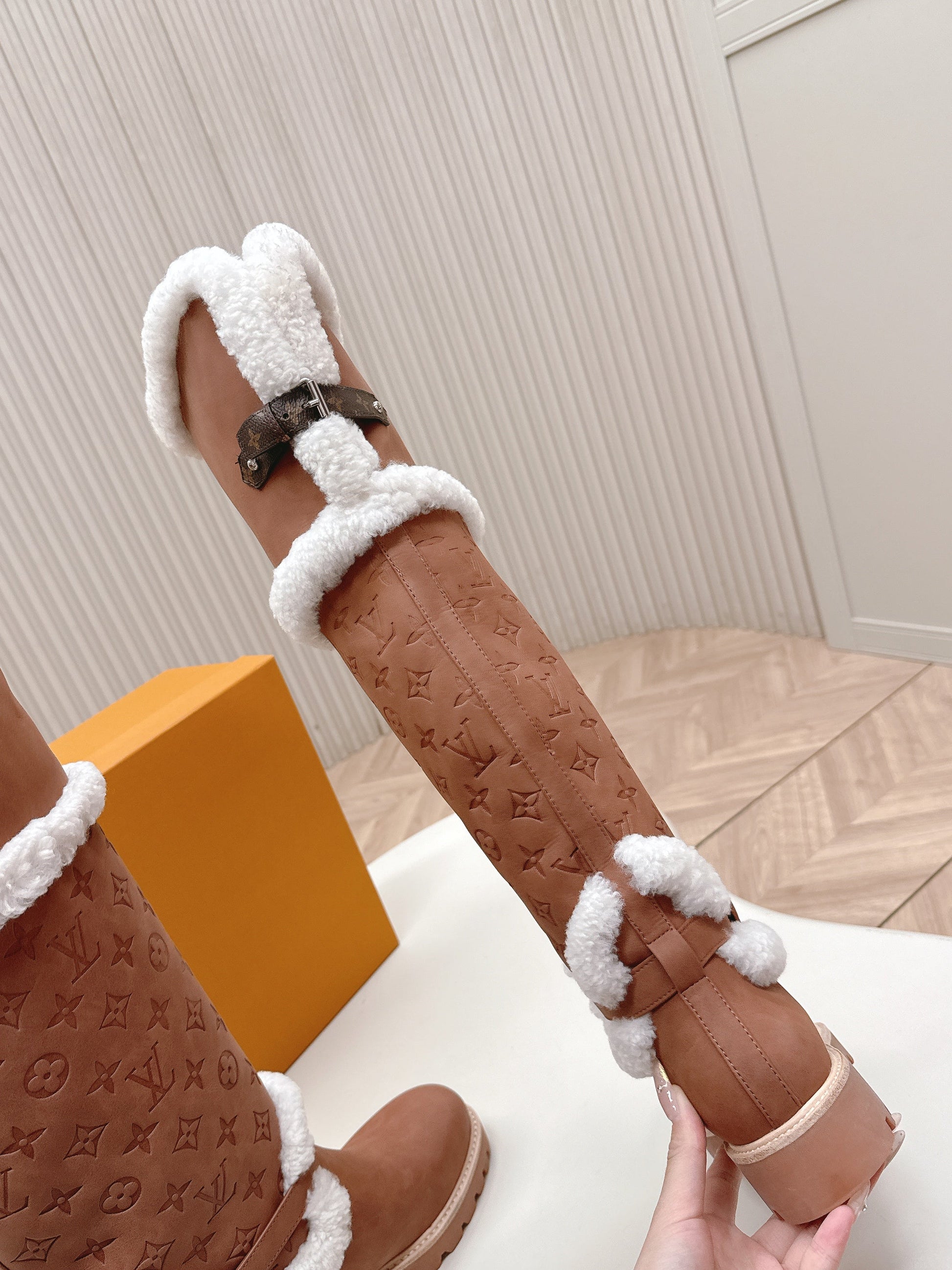 LV 2026 Territory Flat Thigh Boot Brown White Nubuck Calf Leather 595432