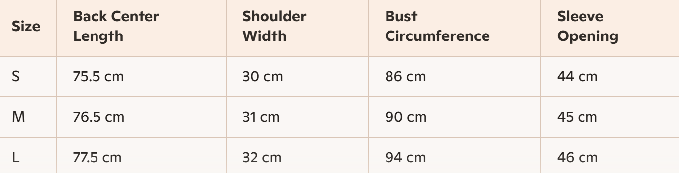 - Size: S, M, L