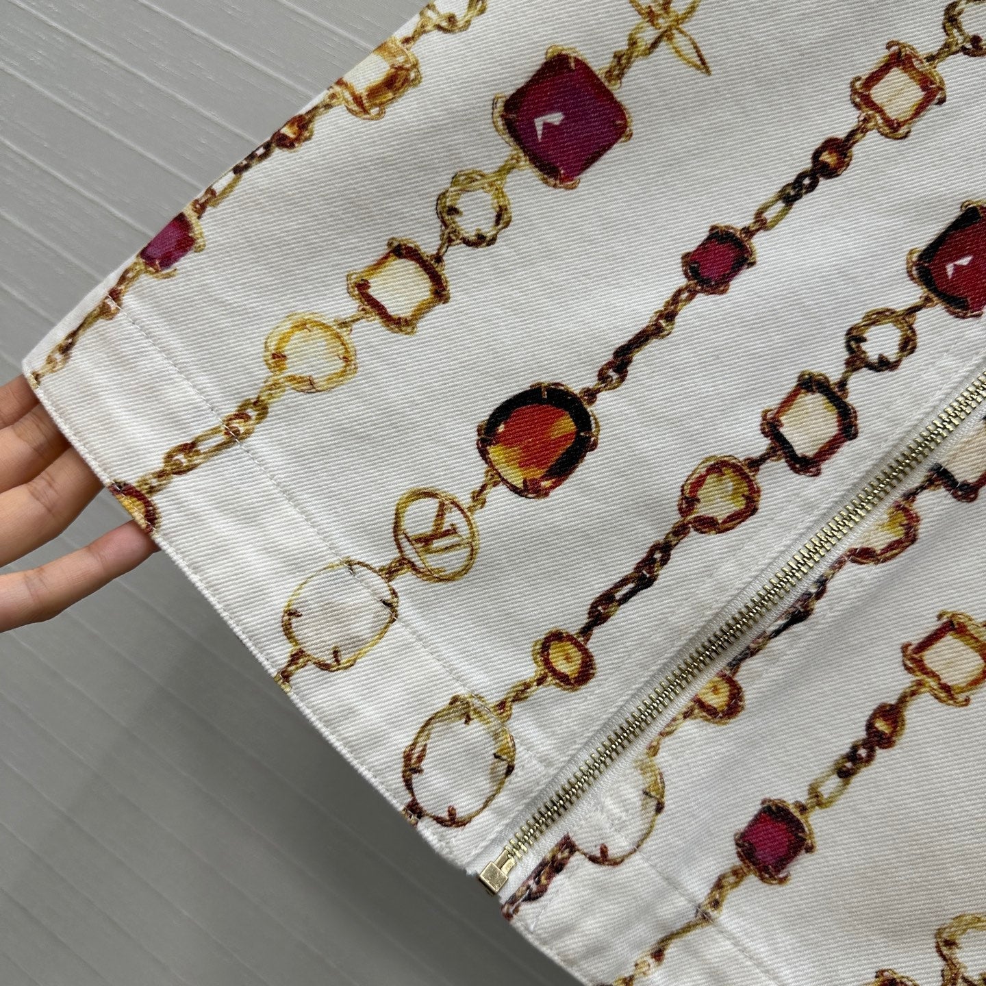 LV 25 Bourgoise Series Printed Zipper Denim Skirt White Cotton