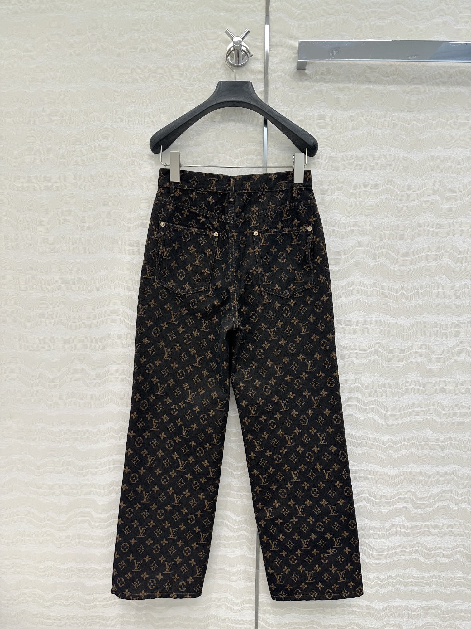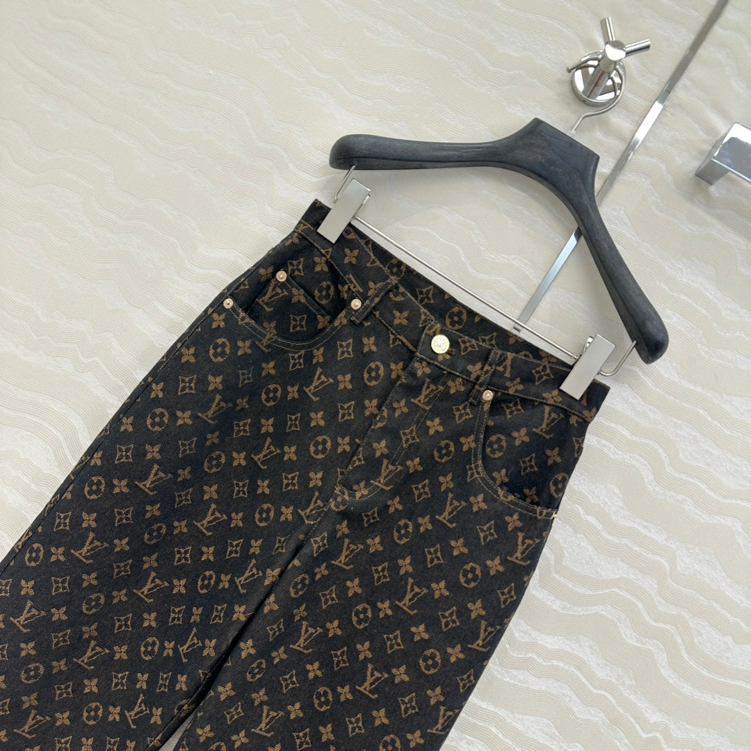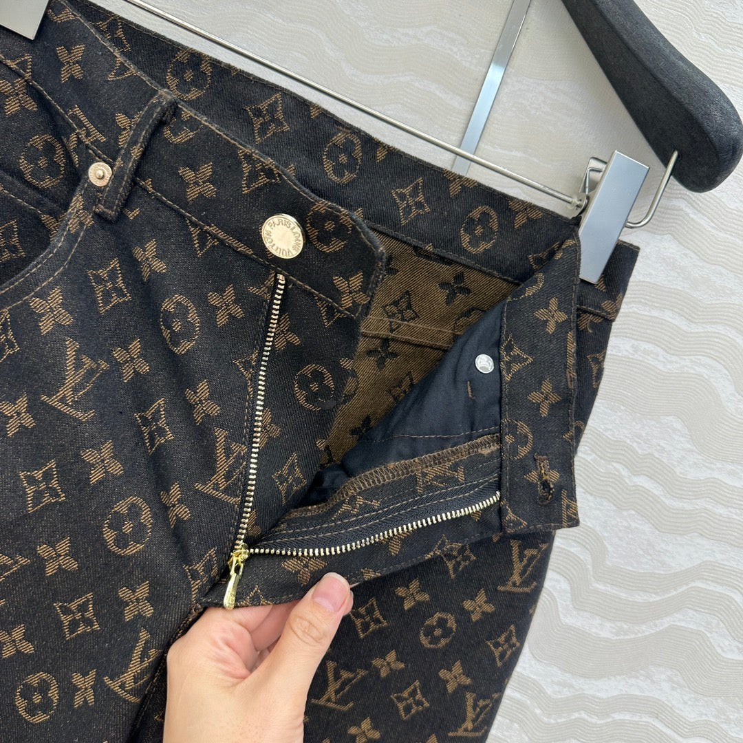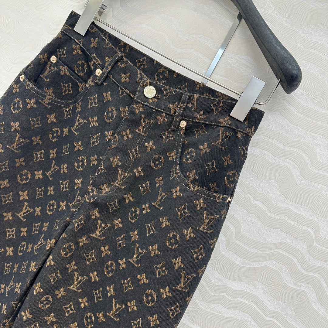LV 25 Classic Logo Denim Trousers Black Cotton