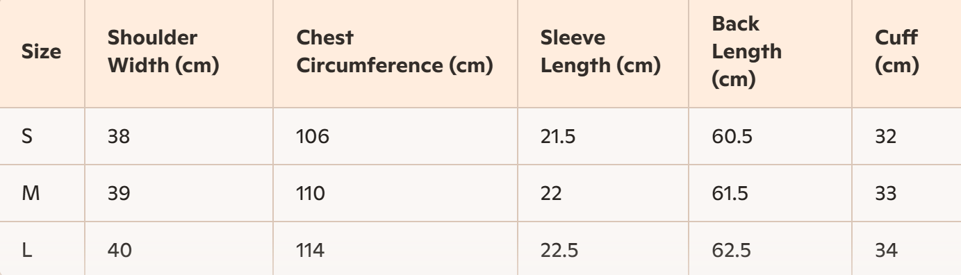- Size : S, M,L