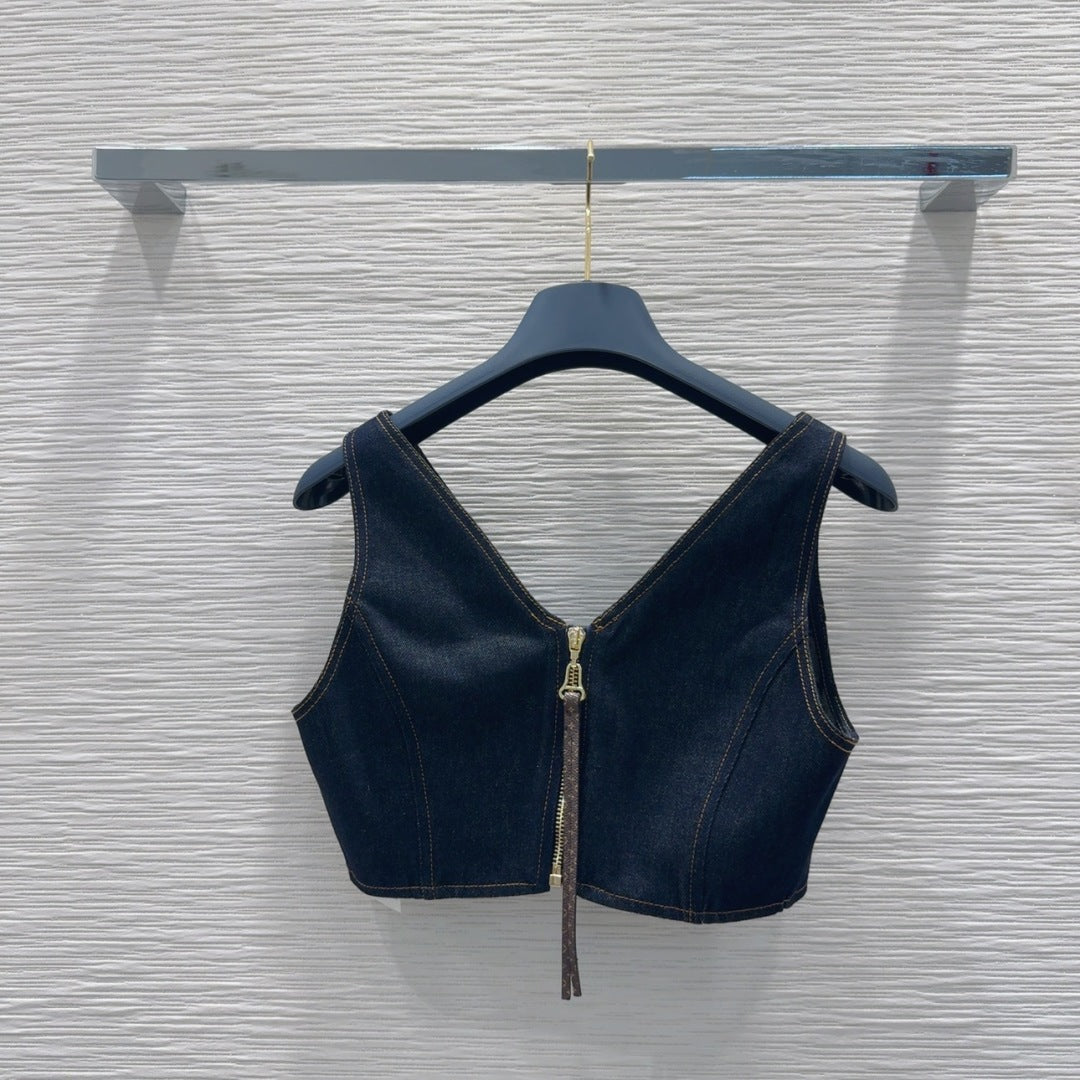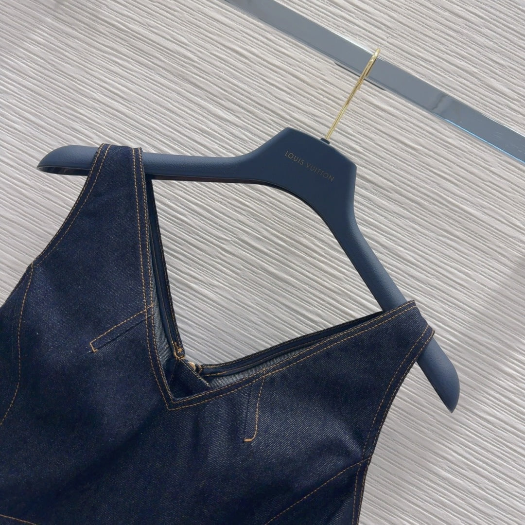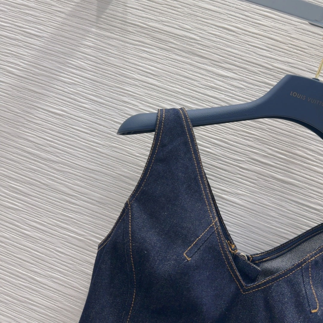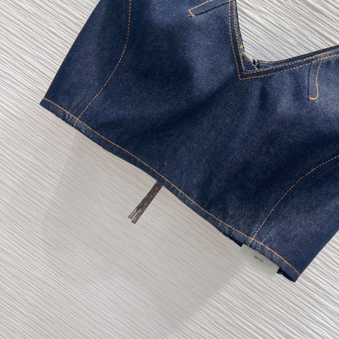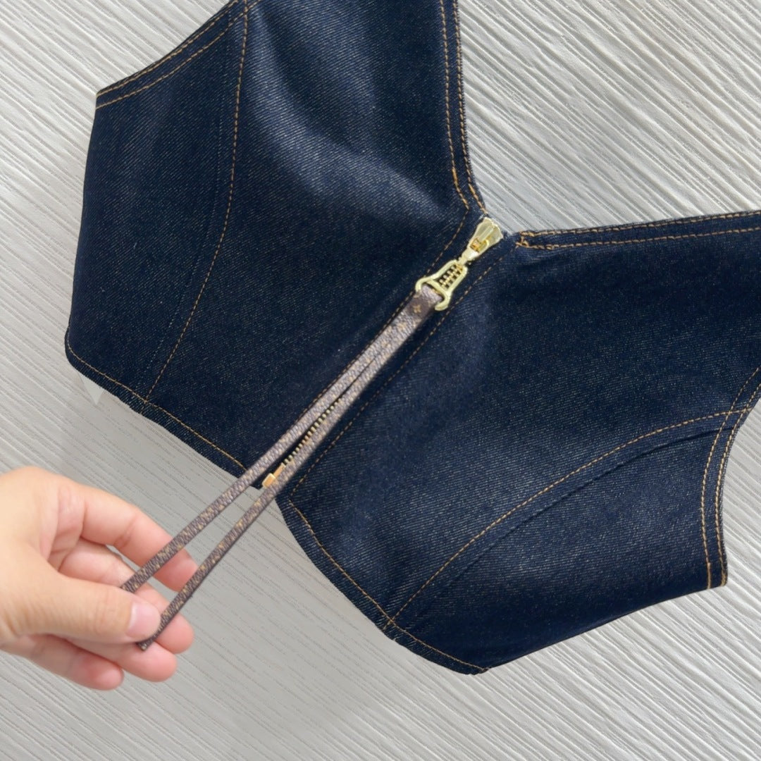 LV 25 Denim Back Zipper Shirt Blue Cotton