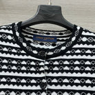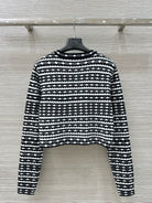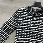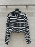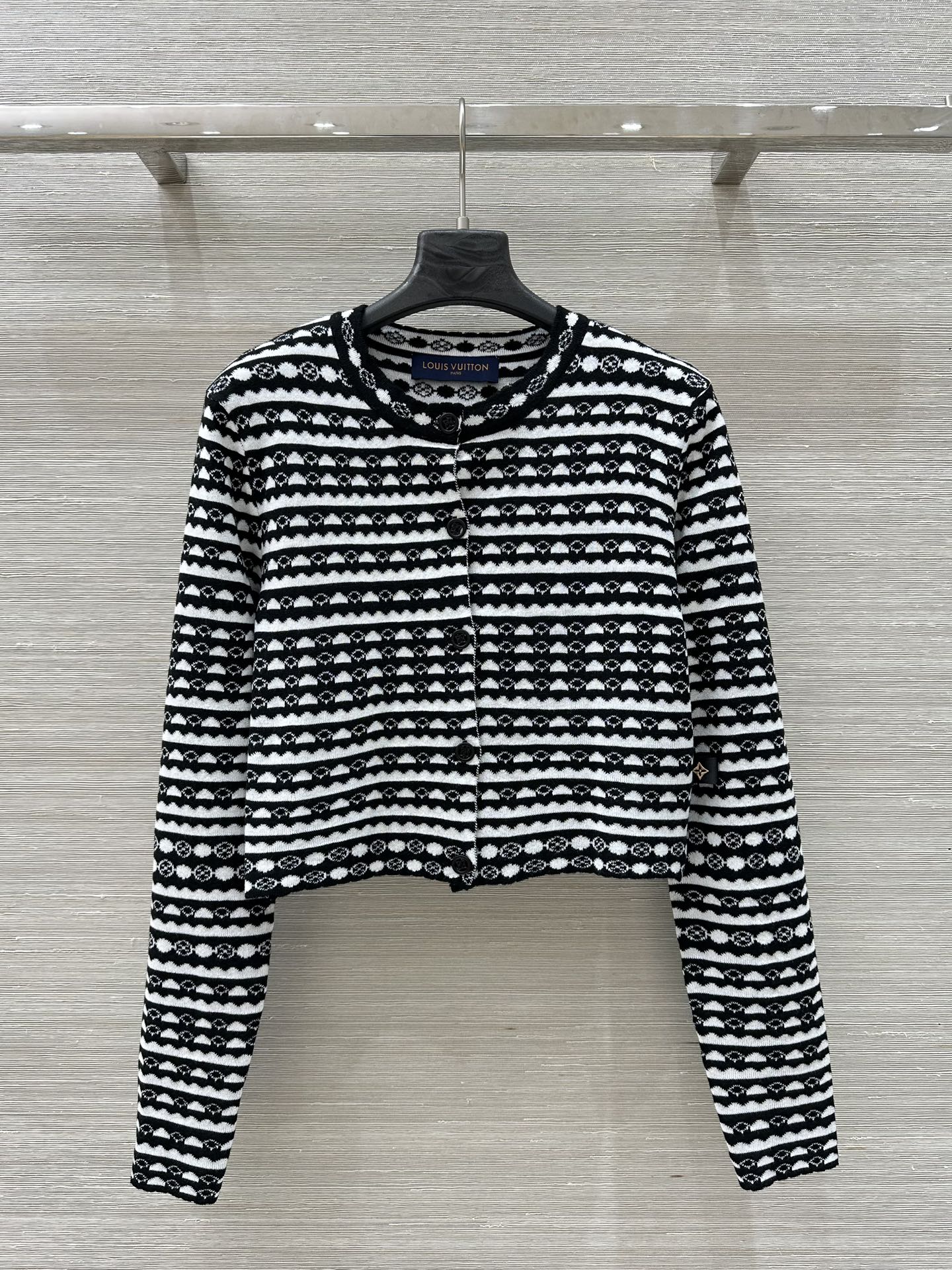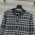 LV 25 Geometric Wave Pattern Round Neck Knitted Shirt Black Wool