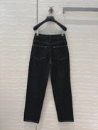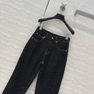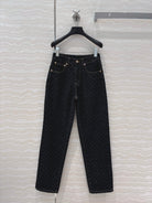 LV 25 Jacquard Logo Denim Trousers Black Cotton