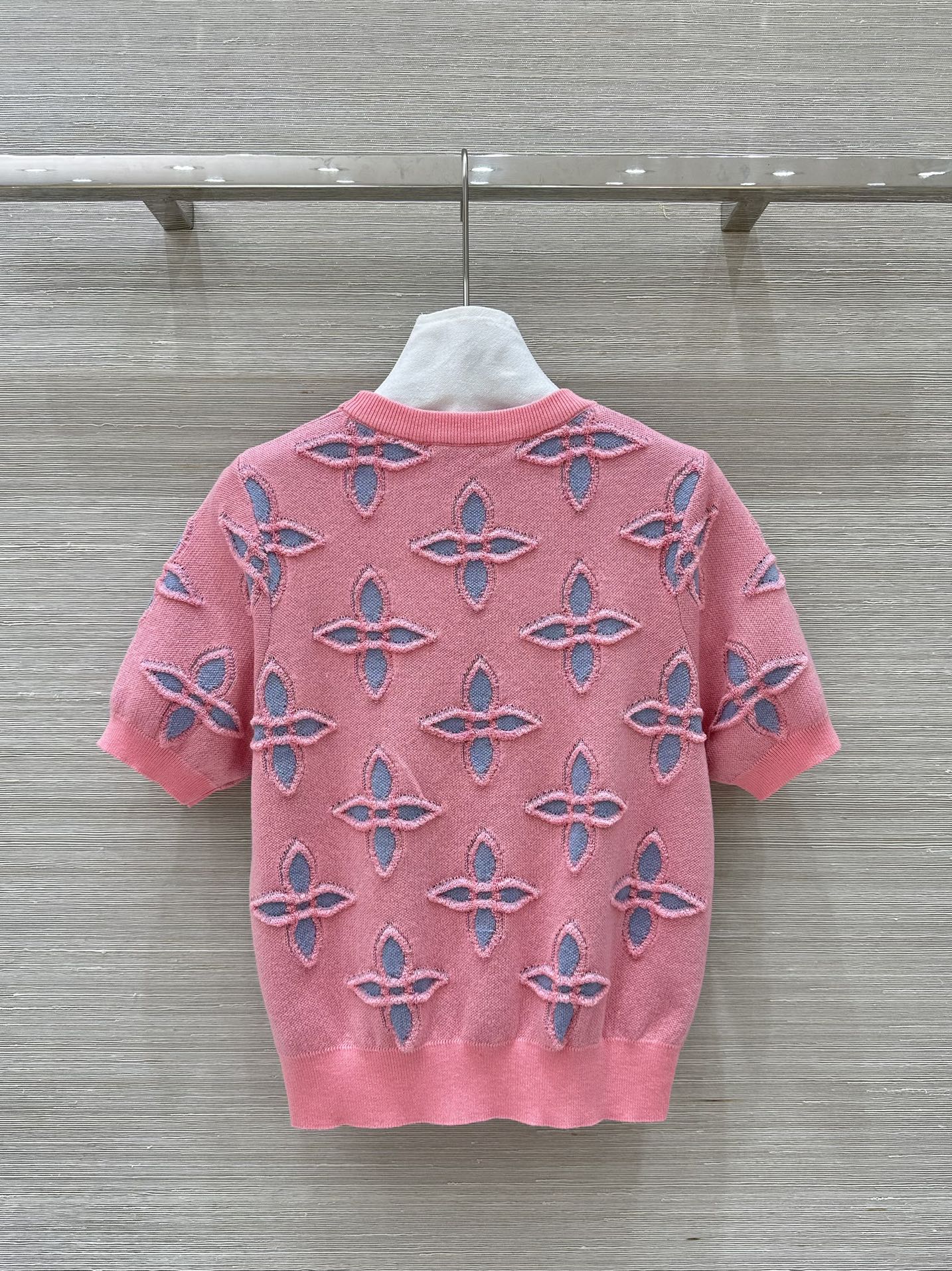 LV 25 Knitted Short-Sleeved Top Pink Wool