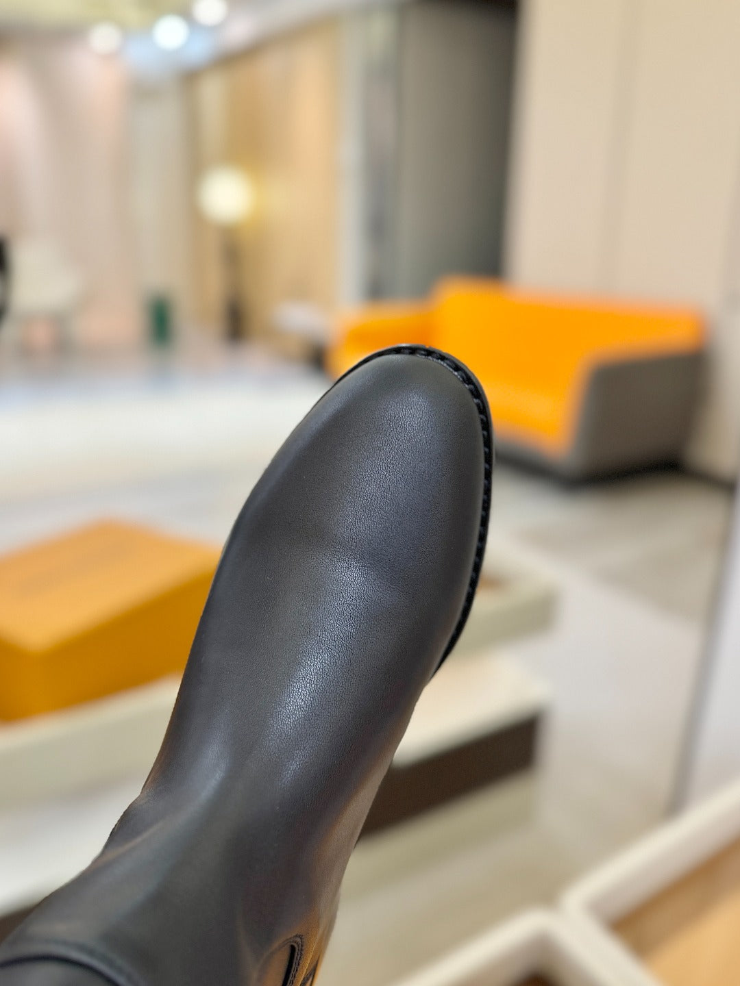 LV 25 Metal Buckle Riding Boots Black Sheepskin 573888
