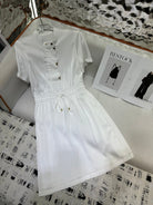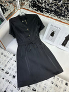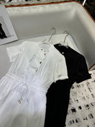 LV 25 Metal Petal Decoration Round Neck Dress Black White Polyester Acetate