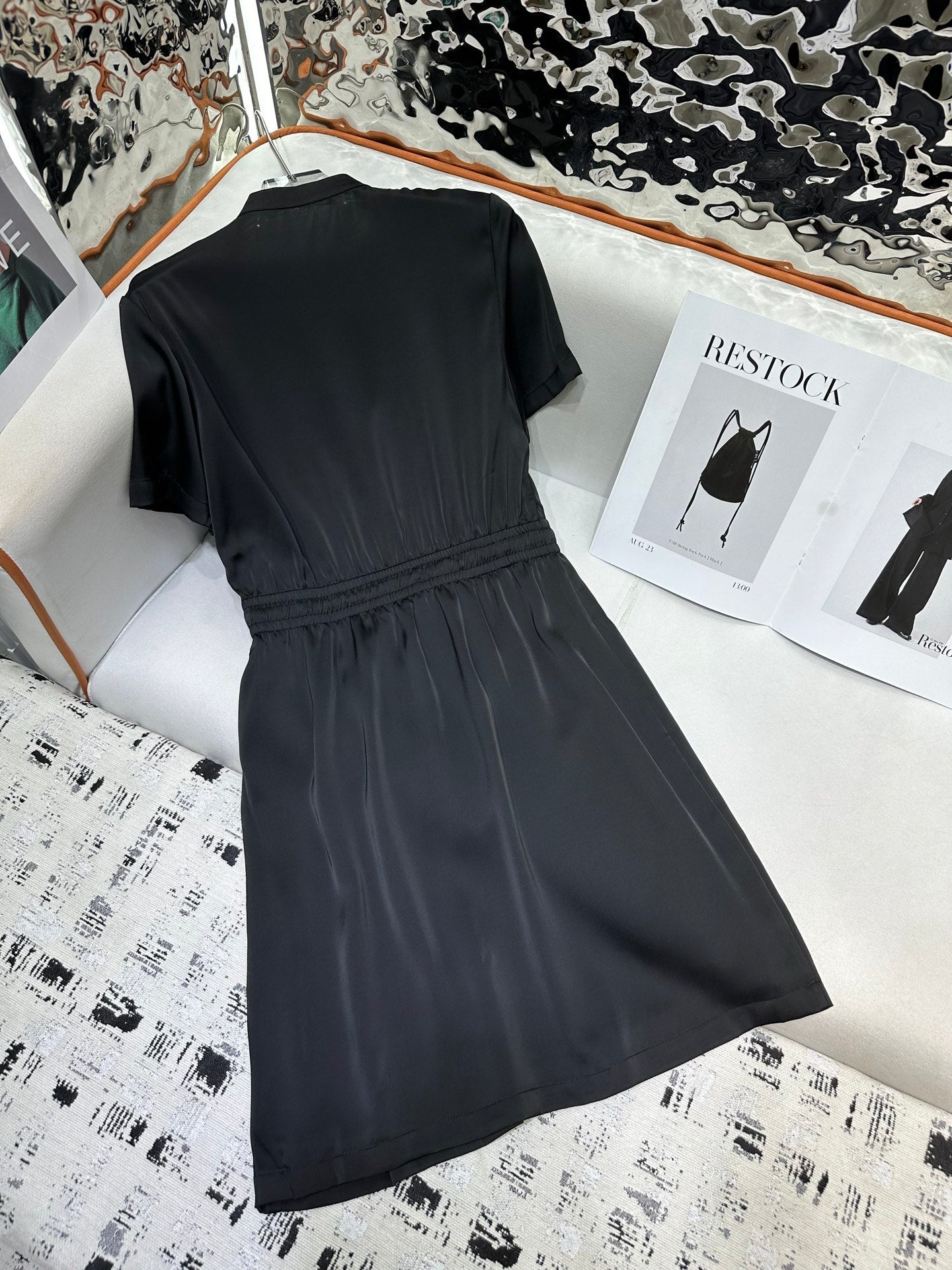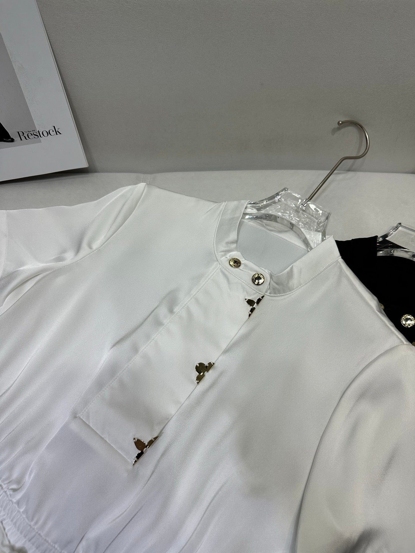 LV 25 Metal Petal Decoration Round Neck Dress Black White Polyester Acetate