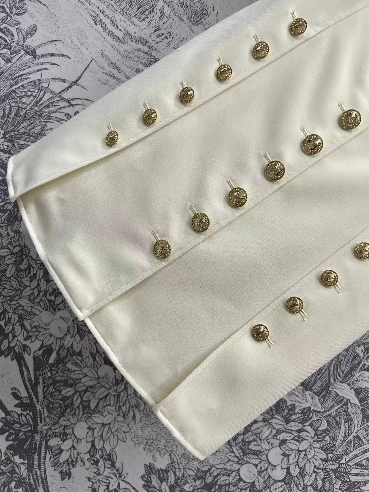 LV 25 Round-Neck Logo Metal Buttoned Dress White Poliester
