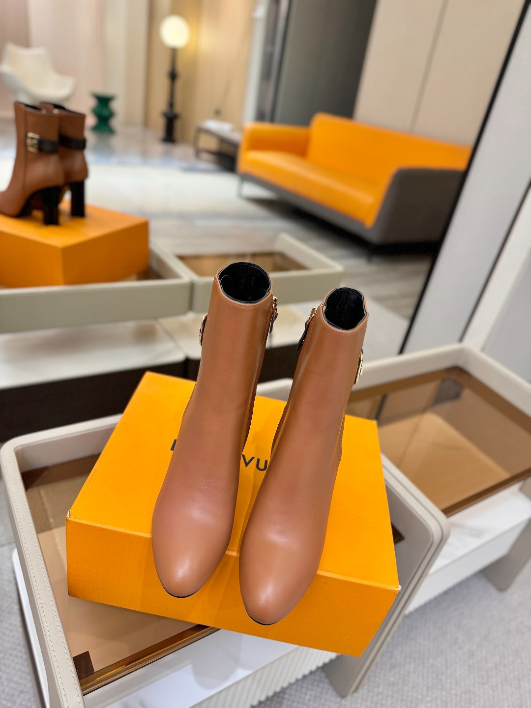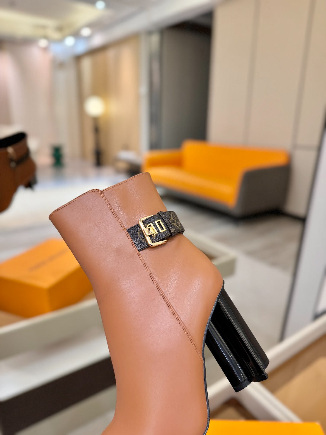LV 25 Runway Ankle Boots 100 Light Brown Calfskin Mix Belt 573870