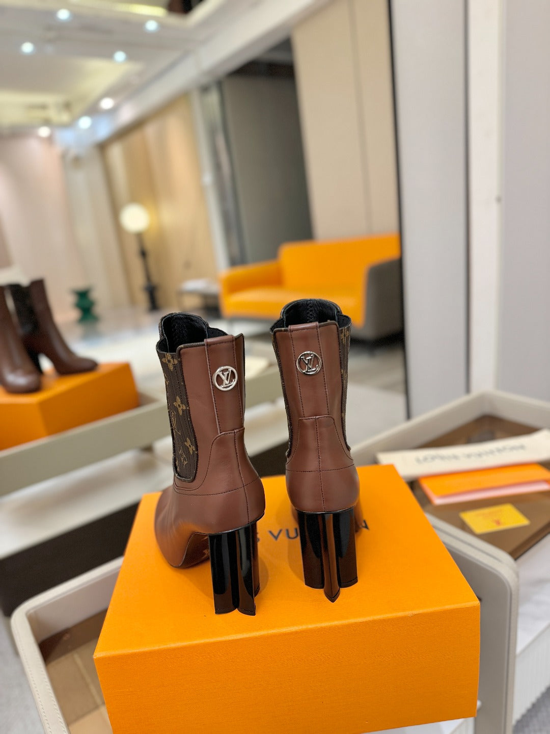 LV 25 Runway Ankle Boots 95 Brown Monogram Brown Calfskin 573859