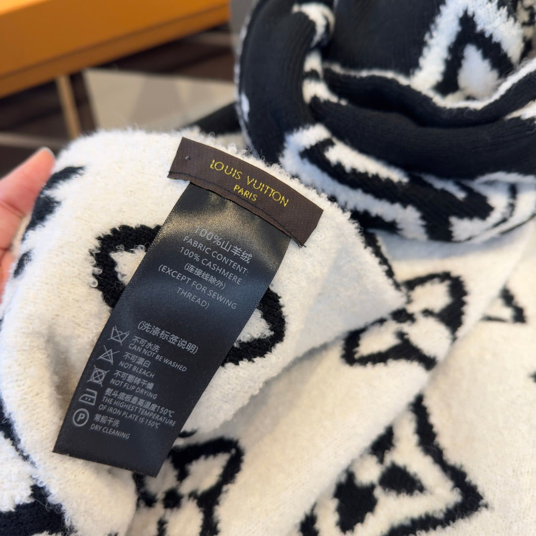 LV 25 Scarf 180cm Black White Wool 293457