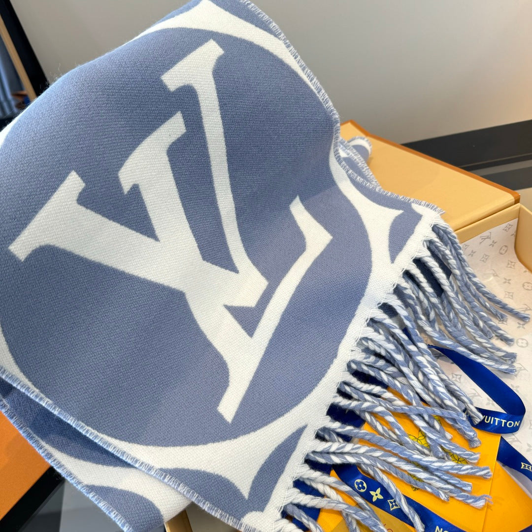 LV 25 Scarf 186cm Light Blue White Wool 293488